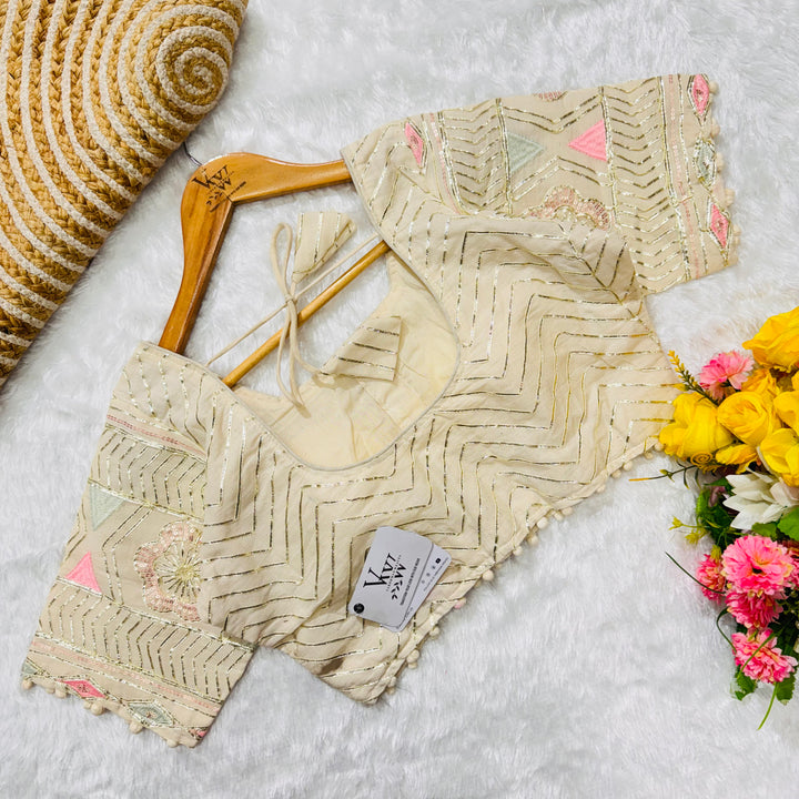 Introducing our beautiful blouse featuring multi work embroidery and intricate sequence details. This piece is perfect for any occasion, adding elegance and flair to any outfit. Made with high-quality materials, this blouse is sure to impress. Upgrade your wardrobe with this stunning blouse today.