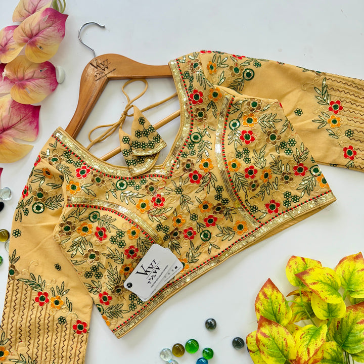 Elevate your wardrobe with our beautiful blouse! Expertly crafted with intricate coding and handtouch sequence detailing, this piece adds a touch of sophistication to any look. Effortlessly mix and match for a versatile, stylish ensemble. 💕