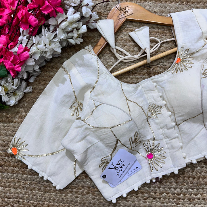 This blouse is a serious stunner 👀 with its beautiful multi work embroidery and sparkly sequence details. It's versatile for all occasions and will turn heads wherever you go 💃🏽. Say goodbye to boring blouses and hello to this eye-catching piece! 😉