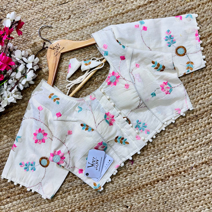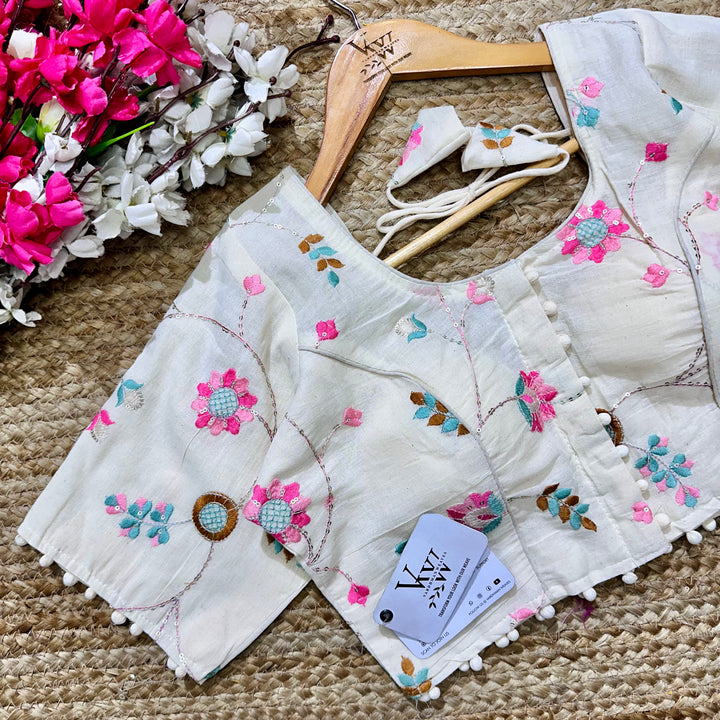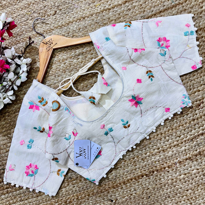 This blouse is a serious stunner 👀 with its beautiful multi work embroidery and sparkly sequence details. It's versatile for all occasions and will turn heads wherever you go 💃🏽. Say goodbye to boring blouses and hello to this eye-catching piece! 😉