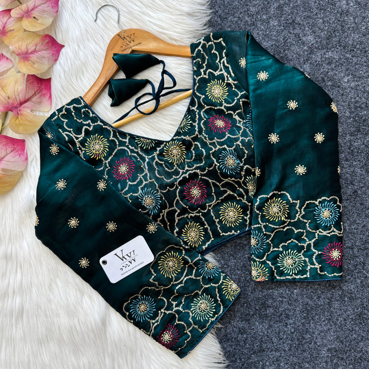 Adorned with Precision: Heavy Multi-Threadwork Blouse with Sequence Work
