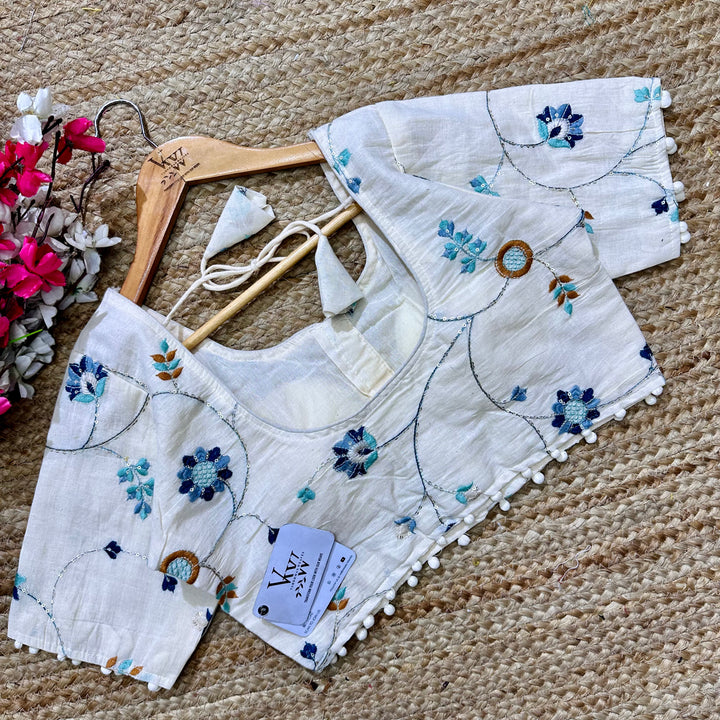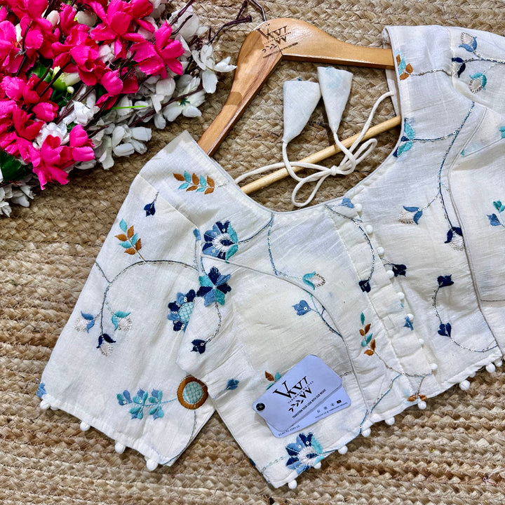 This blouse is a serious stunner 👀 with its beautiful multi work embroidery and sparkly sequence details. It's versatile for all occasions and will turn heads wherever you go 💃🏽. Say goodbye to boring blouses and hello to this eye-catching piece! 😉