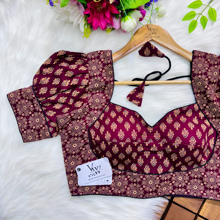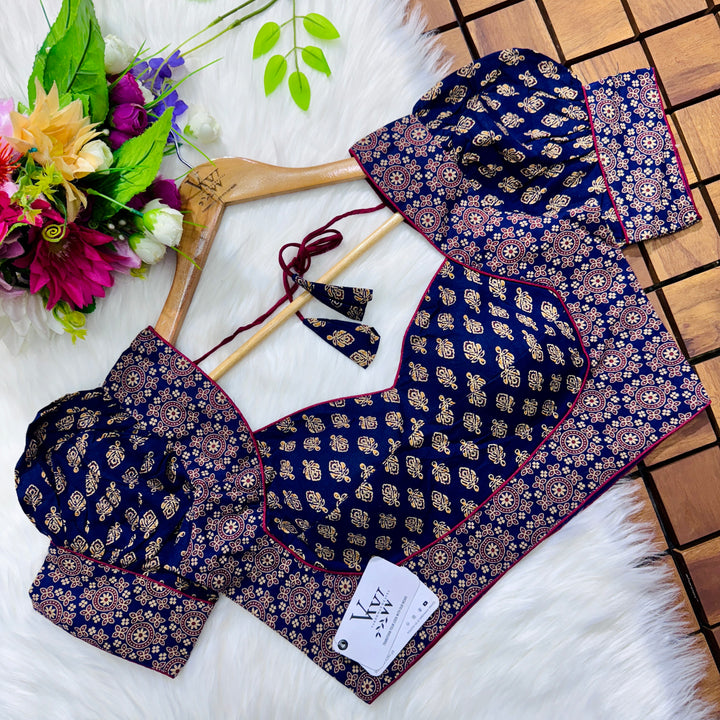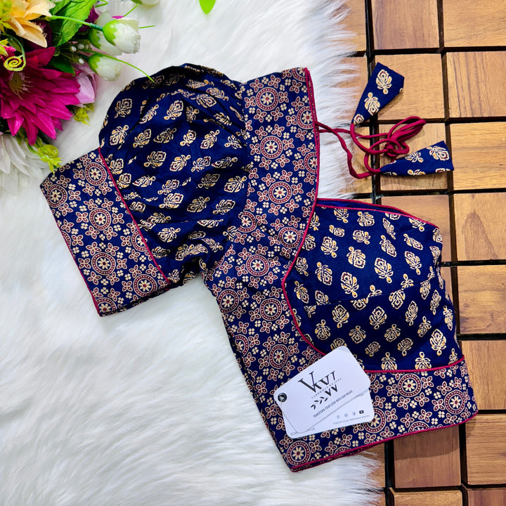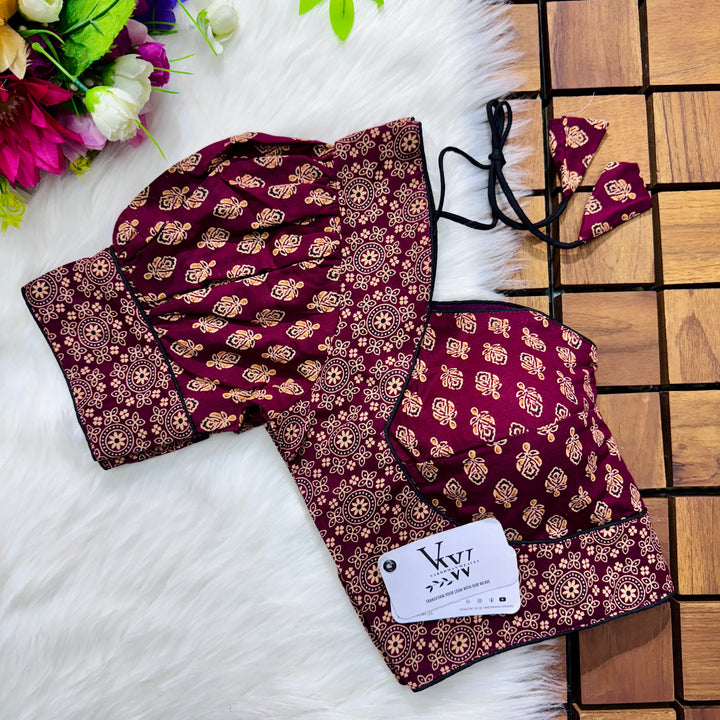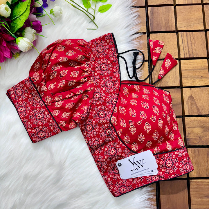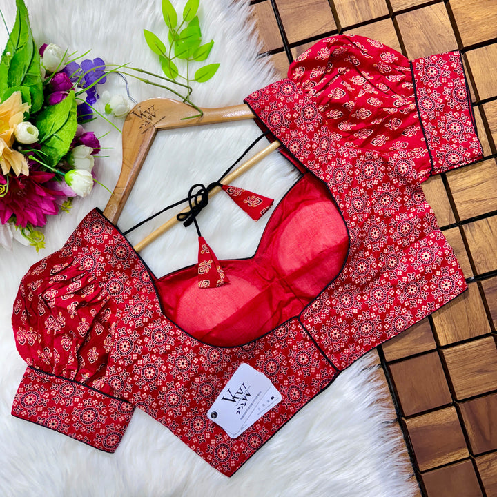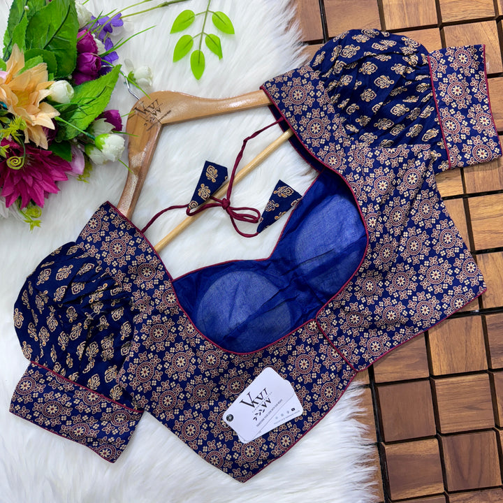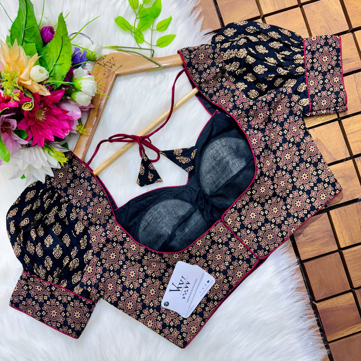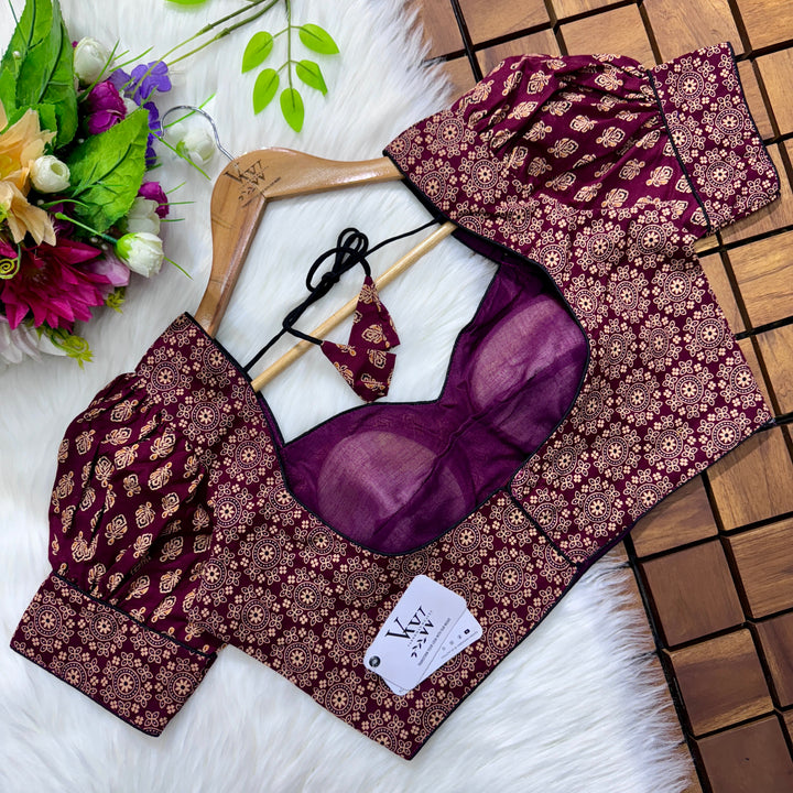 Introducing our pure cotton blouse with a stunning ajrakh print all over. Made with high-quality, breathable cotton, this blouse offers both style and comfort. Expertly crafted with an ancient print technique, the intricate design adds a touch of elegance to any outfit. Upgrade your wardrobe with this beautiful and unique blouse. š