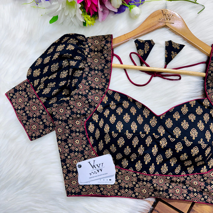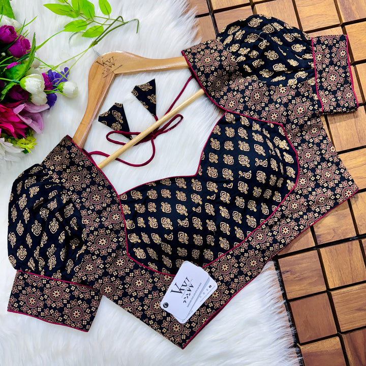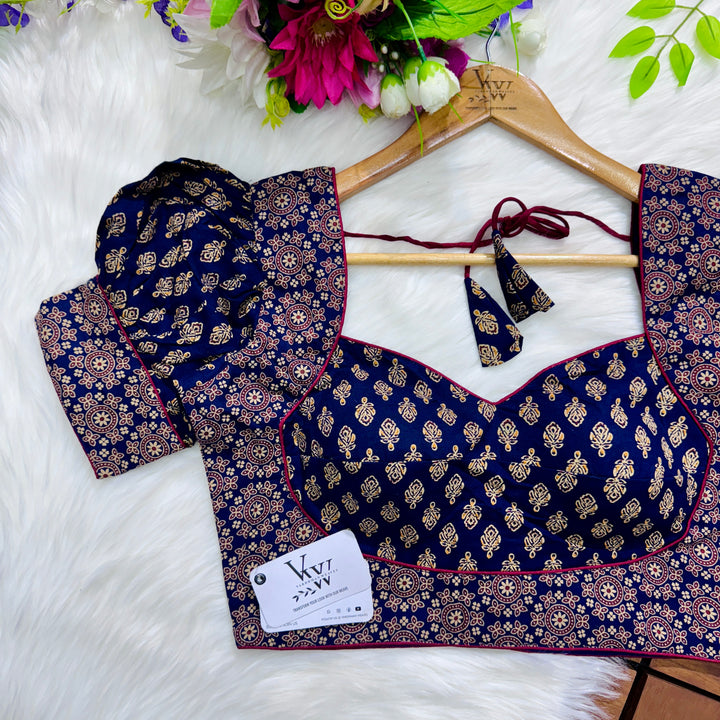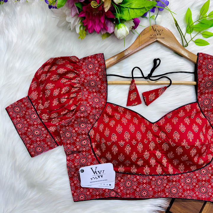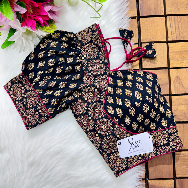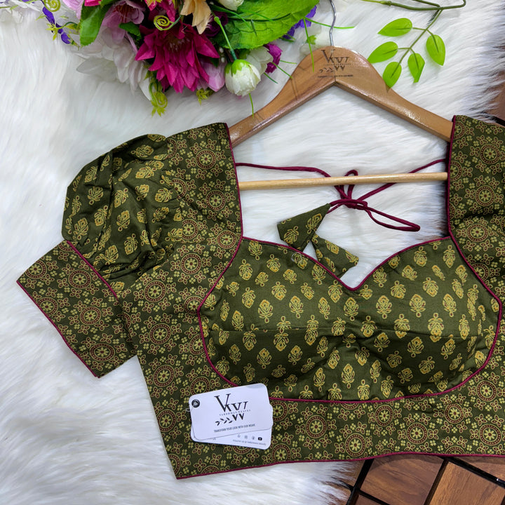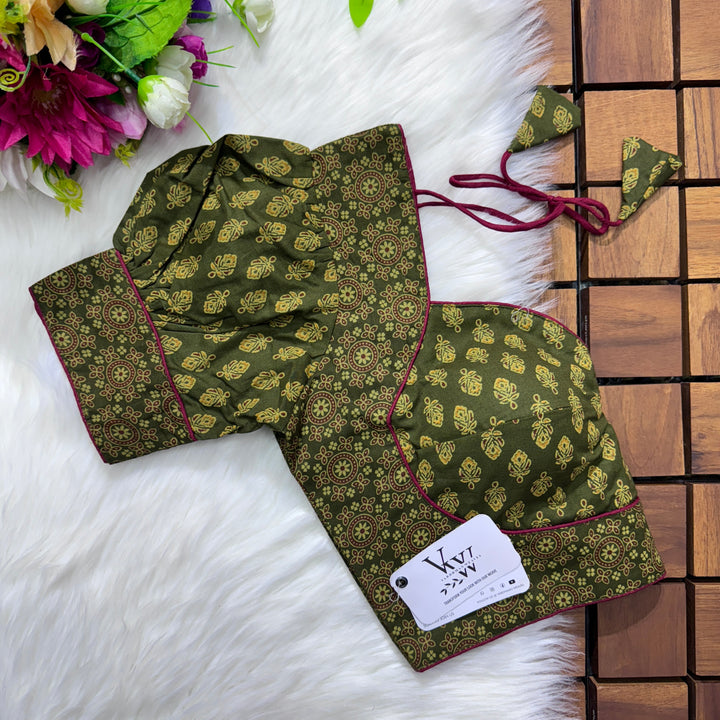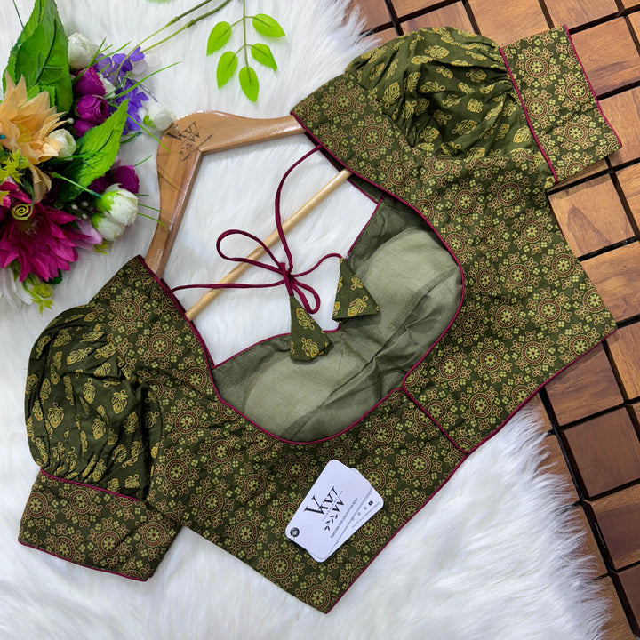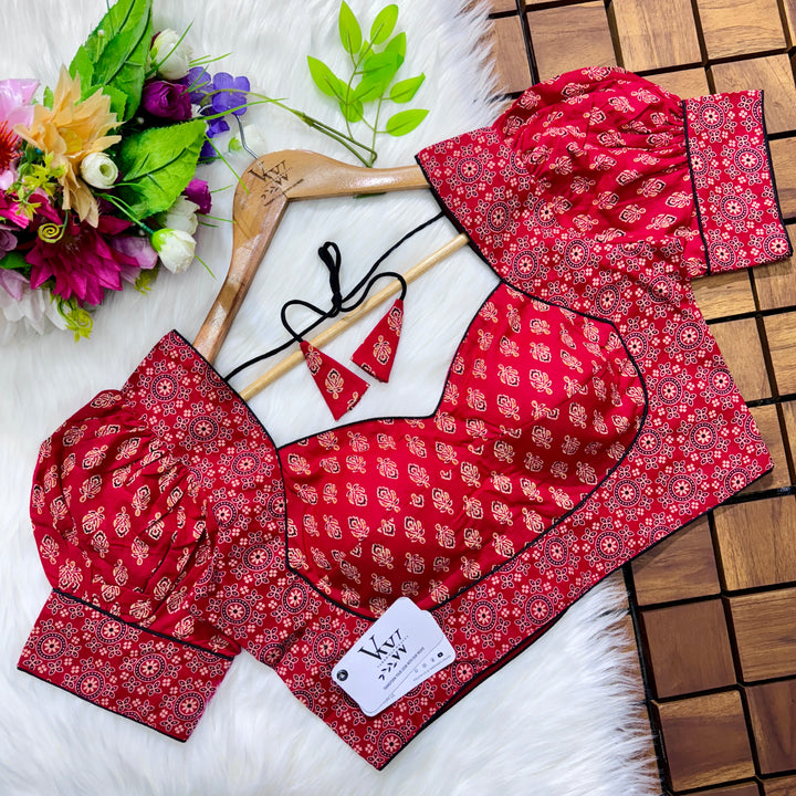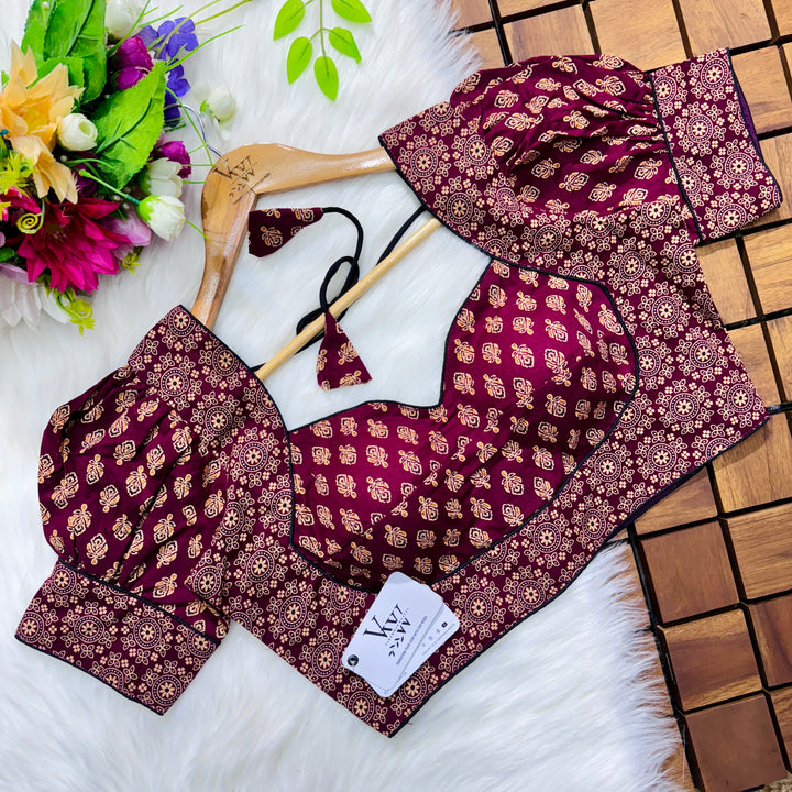 Introducing our pure cotton blouse with a stunning ajrakh print all over. Made with high-quality, breathable cotton, this blouse offers both style and comfort. Expertly crafted with an ancient print technique, the intricate design adds a touch of elegance to any outfit. Upgrade your wardrobe with this beautiful and unique blouse. š