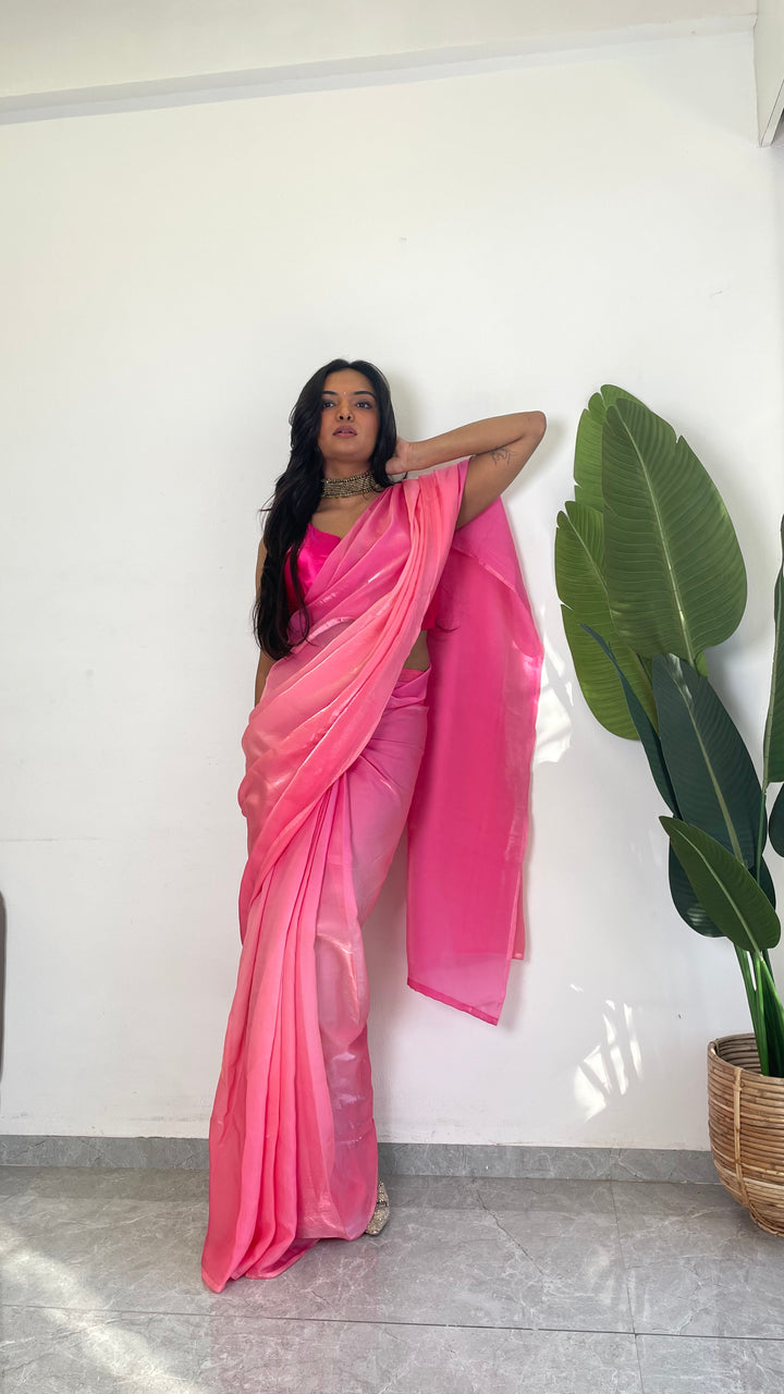 Almirah Silk Symphony in Raspberry - Heavy Silk Ready to Wear Saree with Matching Silk Blouse