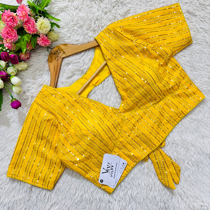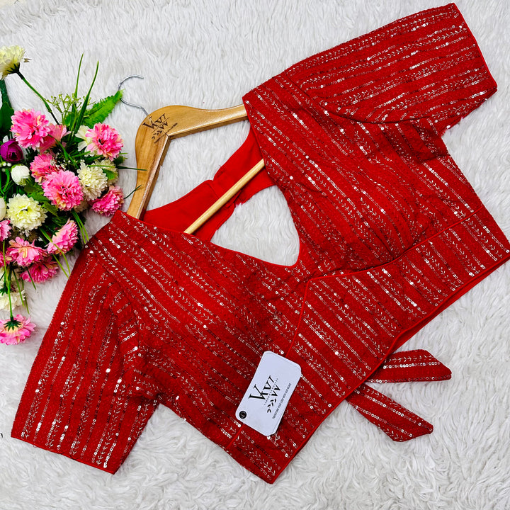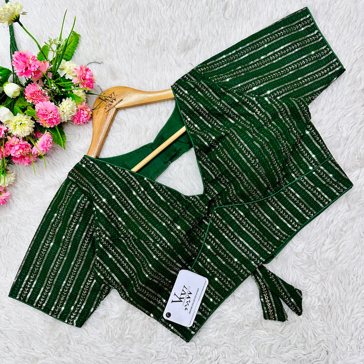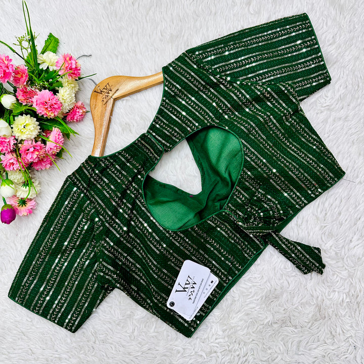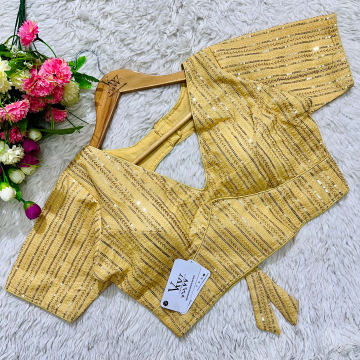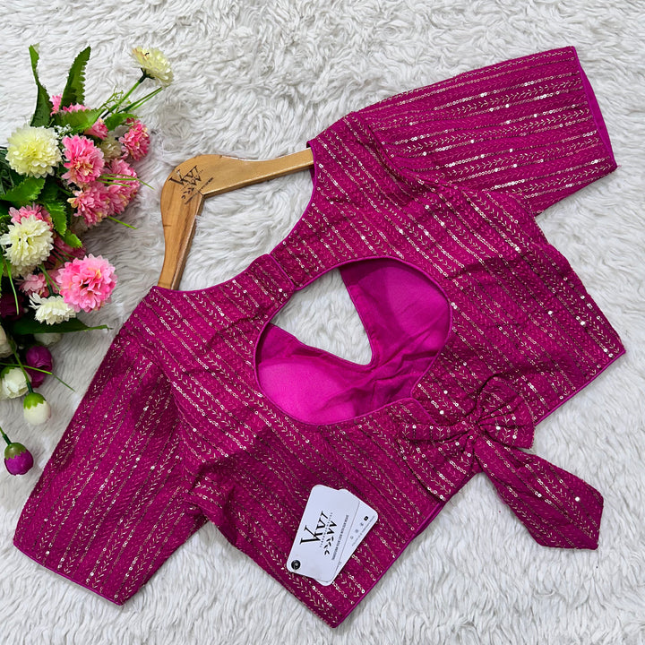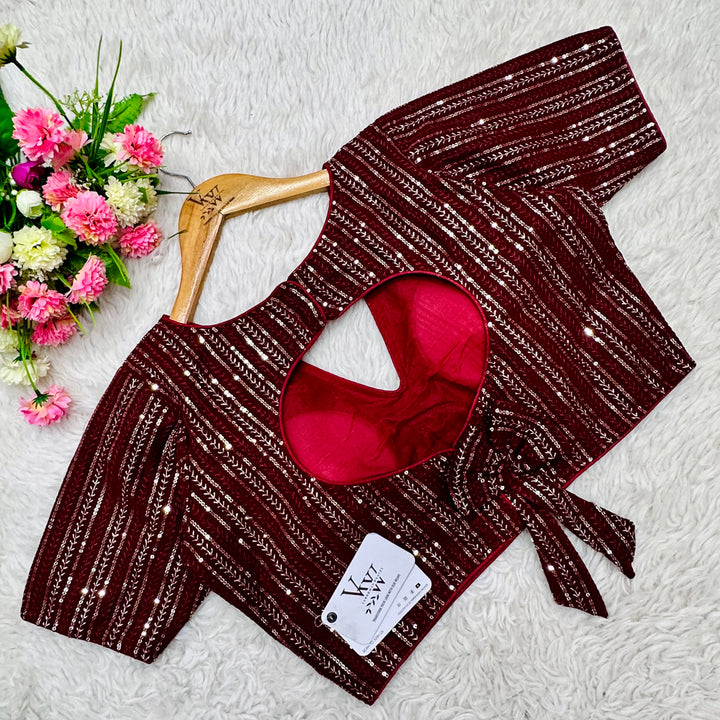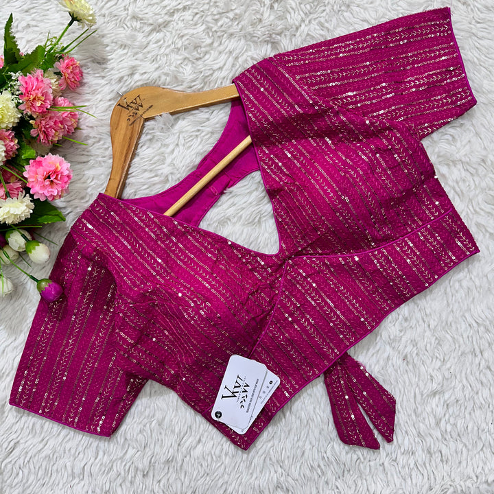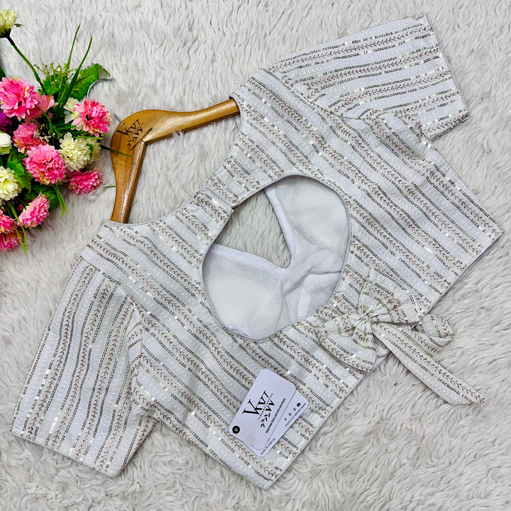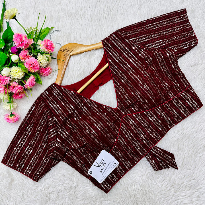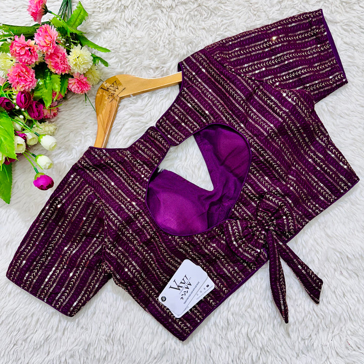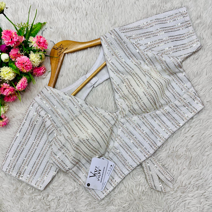 This elegant blouse features beautiful tone to tone embroidery work all over, creating a stunning and unique design. Its intricate sequence work adds a touch of glamour while the overall tone on tone design exudes sophistication. Perfect for any occasion, this blouse is sure to make a statement. 👌