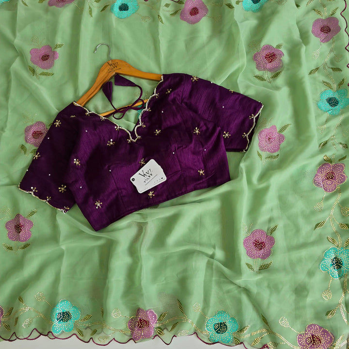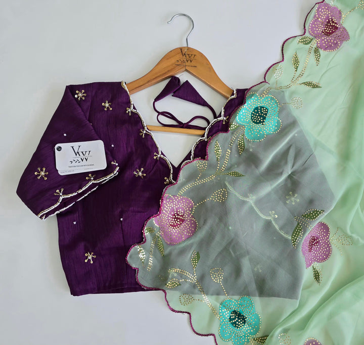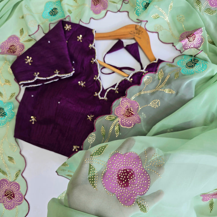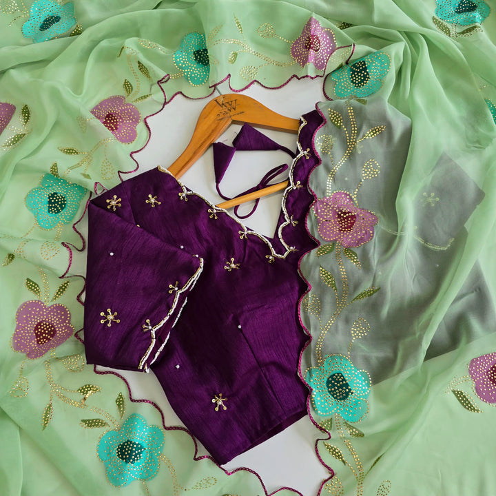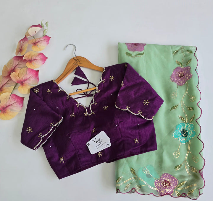 Elevate your style with this stunning hand-painted saree, adorned with intricate Golden Drop work that adds a touch of luxury. Paired with a beautifully crafted handwork blouse, this ensemble is a true masterpiece of artisanal craftsmanship. Perfect for special occasions, weddings, and formal events