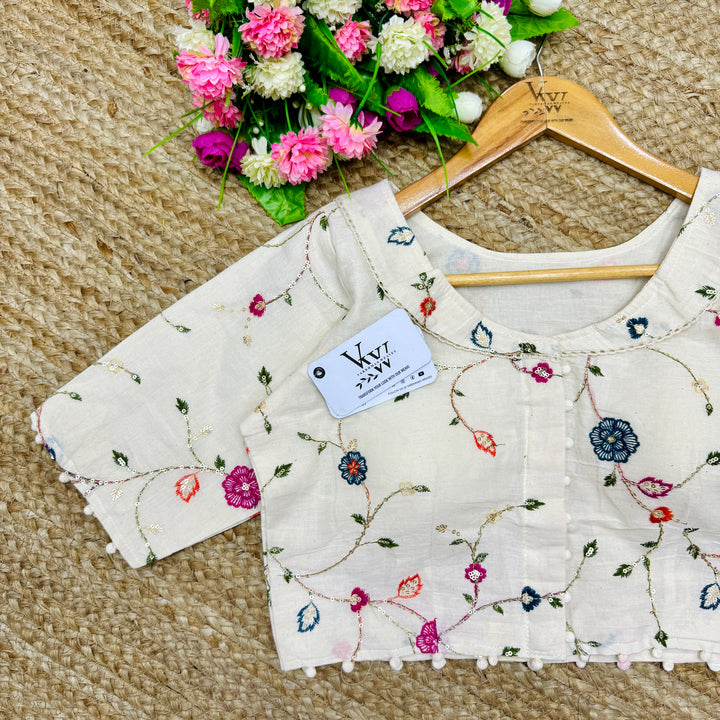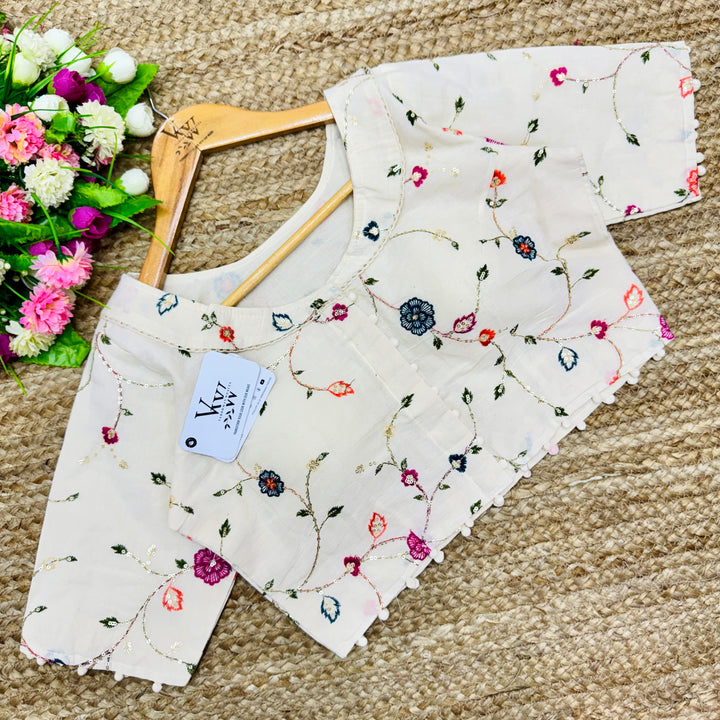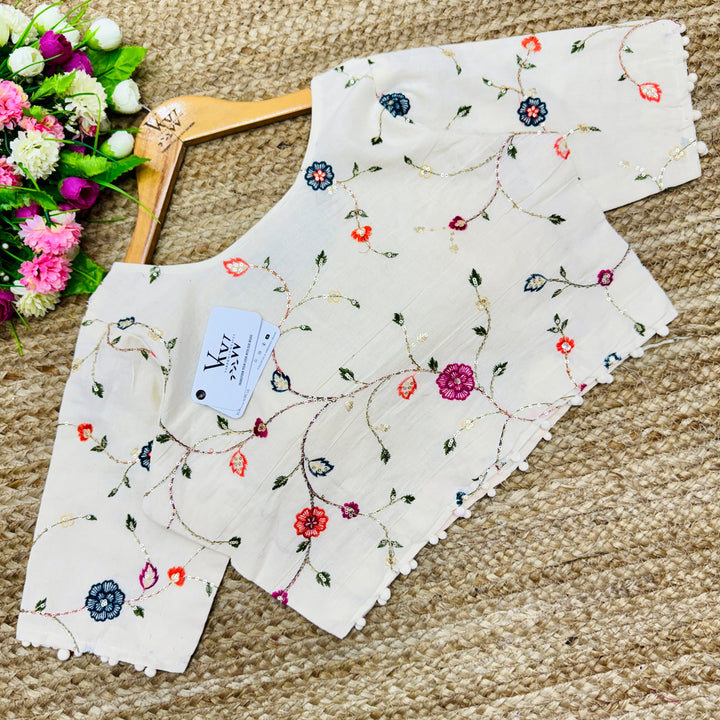 "Enhance your wardrobe with our stunning multi-work blouse. Featuring intricate embroidery and shimmering sequins, this versatile top is perfect for any occasion. Elevate your style with our unique and beautiful design, sure to make a statement."
