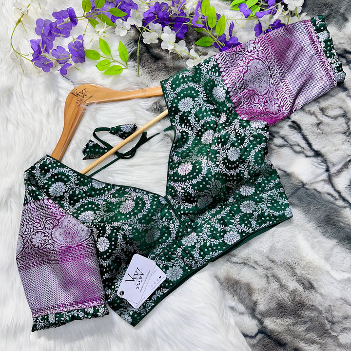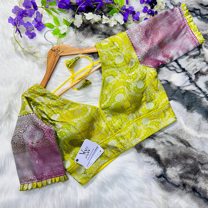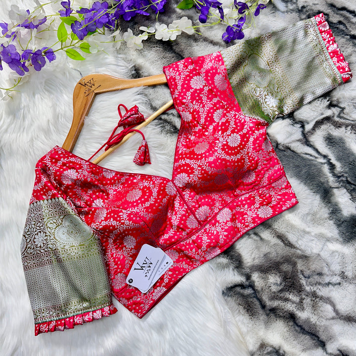 Add a touch of elegance and luxury to your wardrobe with our Banarasi silk saree! Handmade from pure silk with intricate golden jari detailing all over the blouse, this saree is perfect for any special occasion. š«