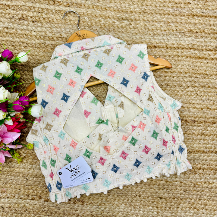 This blouse is expertly crafted with beautiful embroidery and sequence work all over, adding a touch of elegance to any outfit. 🌺Its intricate details and stunning design make it a must-have for any fashion-forward individual. Perfect for any occasion, this blouse is a versatile addition to your wardrobe.