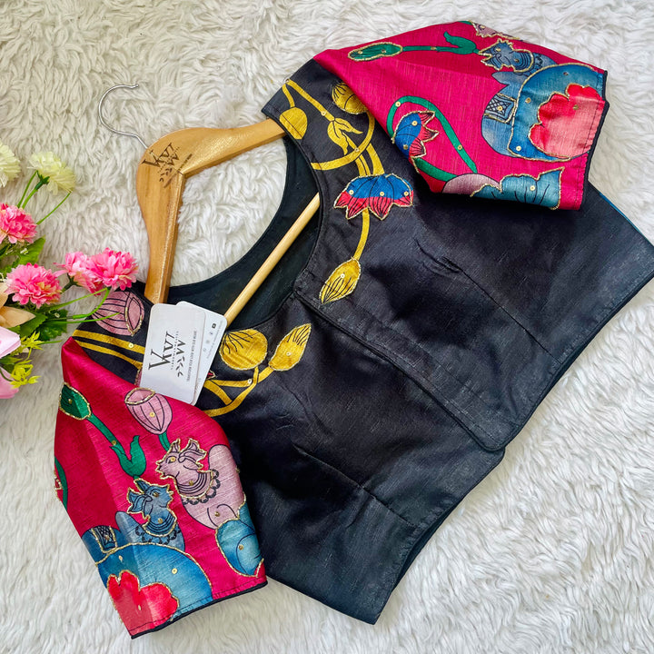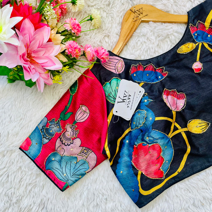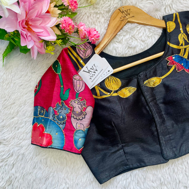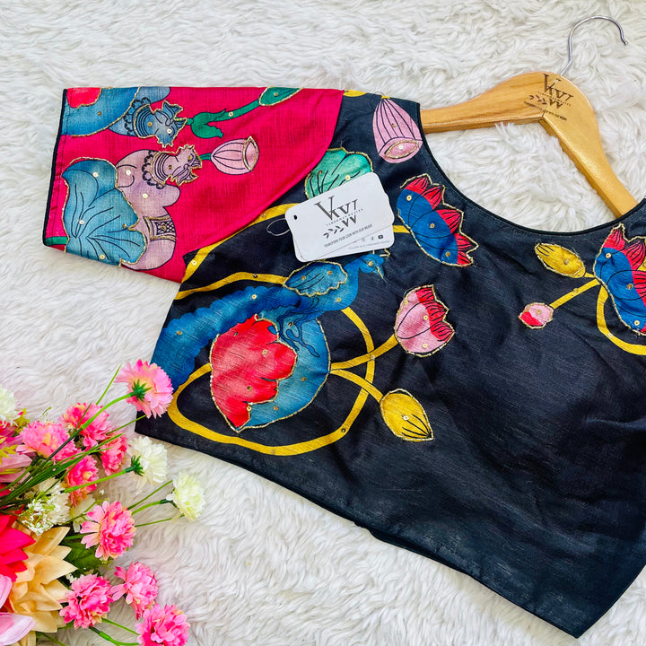This stunning blouse features a digital print and antique handcrafted work throughout, combining modern and traditional elements for a unique and eye-catching look. The intricate details and expert craftsmanship make this blouse a must-have for any fashion-forward wardrobe.