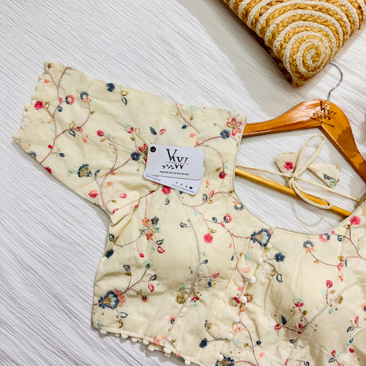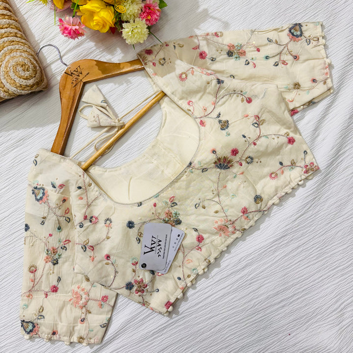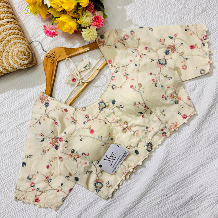 Introducing our beautiful blouse featuring multi work embroidery and intricate sequence details. This piece is perfect for any occasion, adding elegance and flair to any outfit. Made with high-quality materials, this blouse is sure to impress. Upgrade your wardrobe with this stunning blouse today.