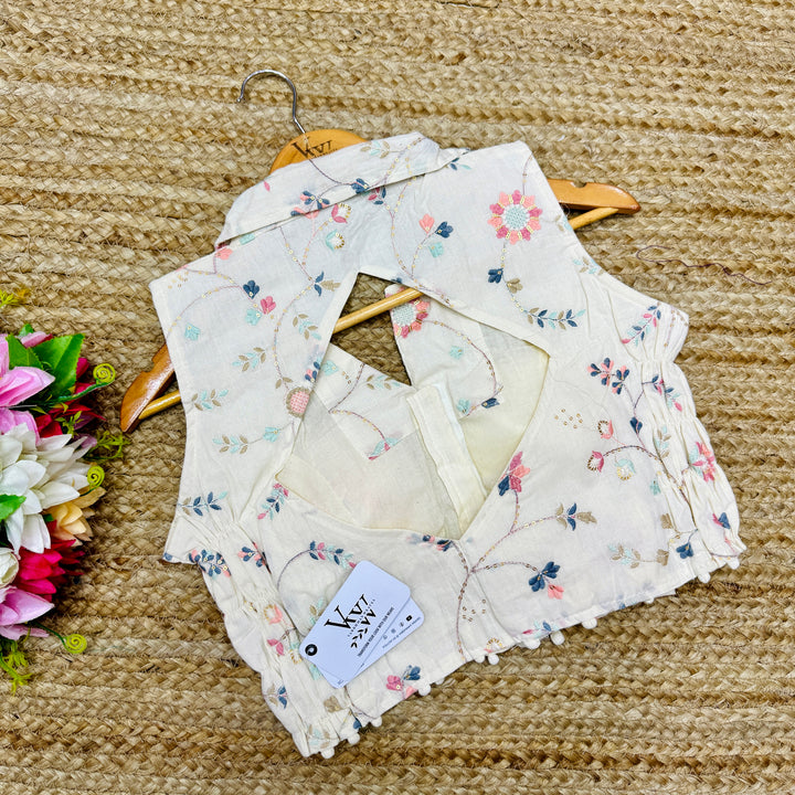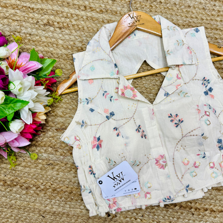 This blouse is expertly crafted with beautiful embroidery and sequence work all over, adding a touch of elegance to any outfit. 🌺Its intricate details and stunning design make it a must-have for any fashion-forward individual. Perfect for any occasion, this blouse is a versatile addition to your wardrobe.