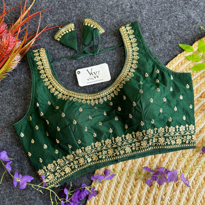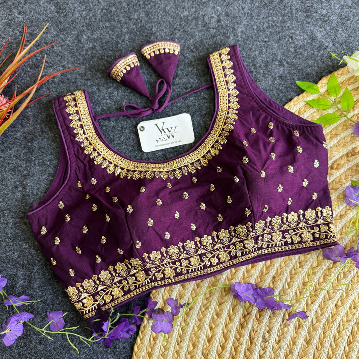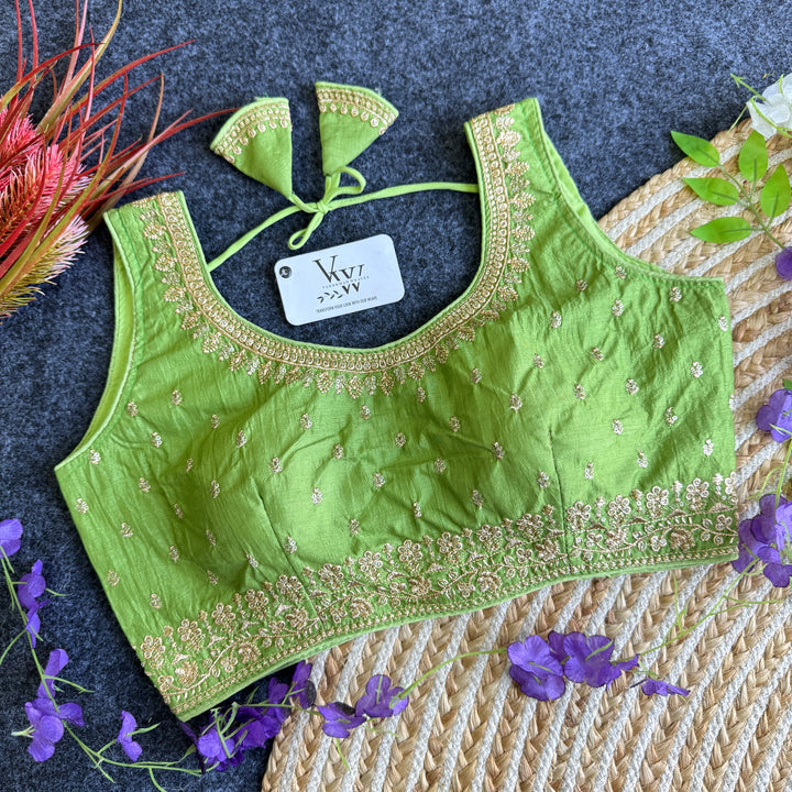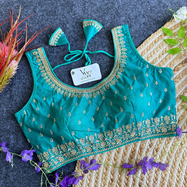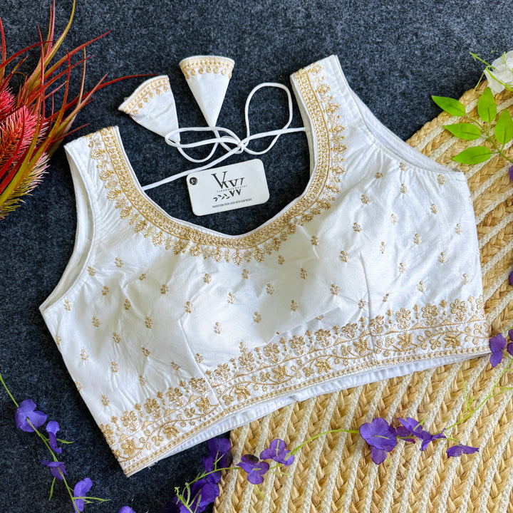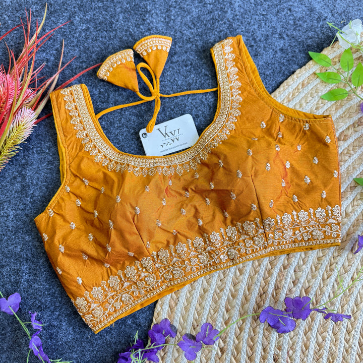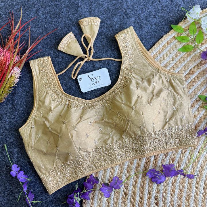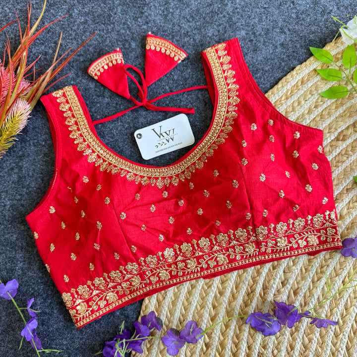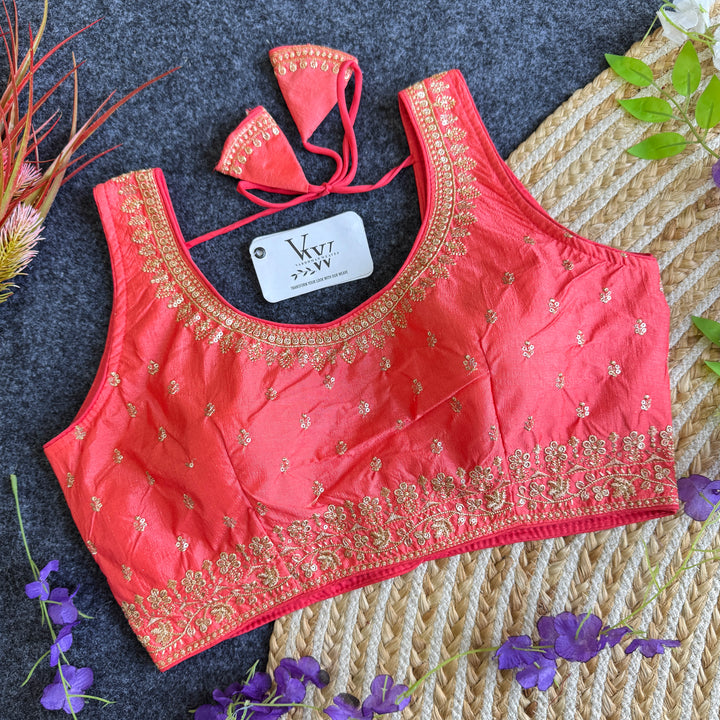 This exquisite sleeveless blouse showcases intricate heavy embroidery work that adds a touch of sophistication and glamour. Perfect for formal events, weddings, and special occasions, this blouse is sure to make you stand out in a crowd. Pair it with a stunning saree or lehenga for a truly regal look