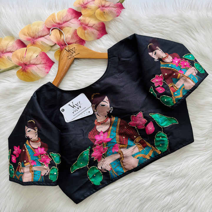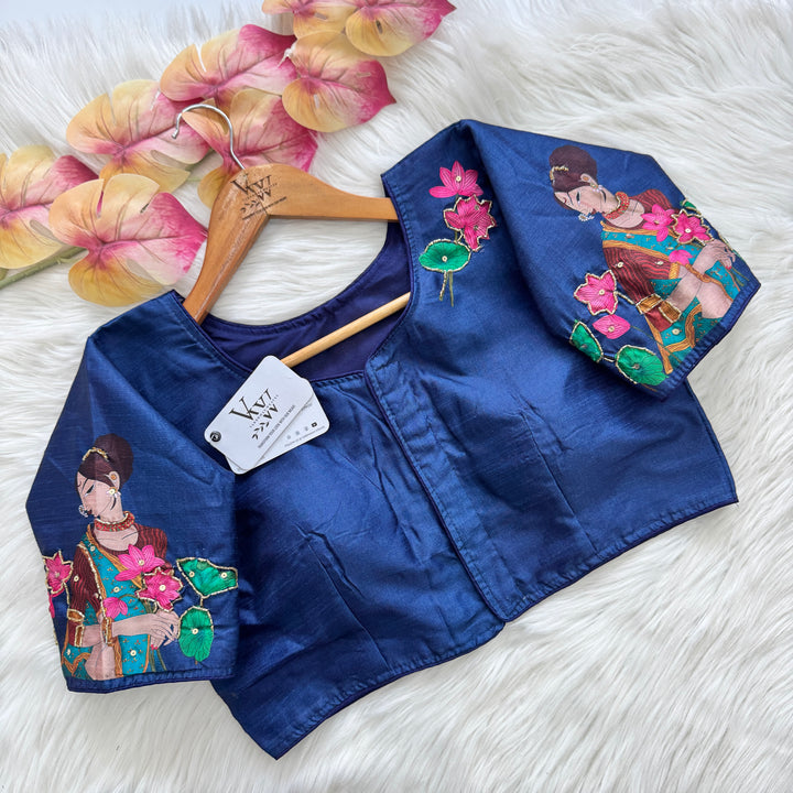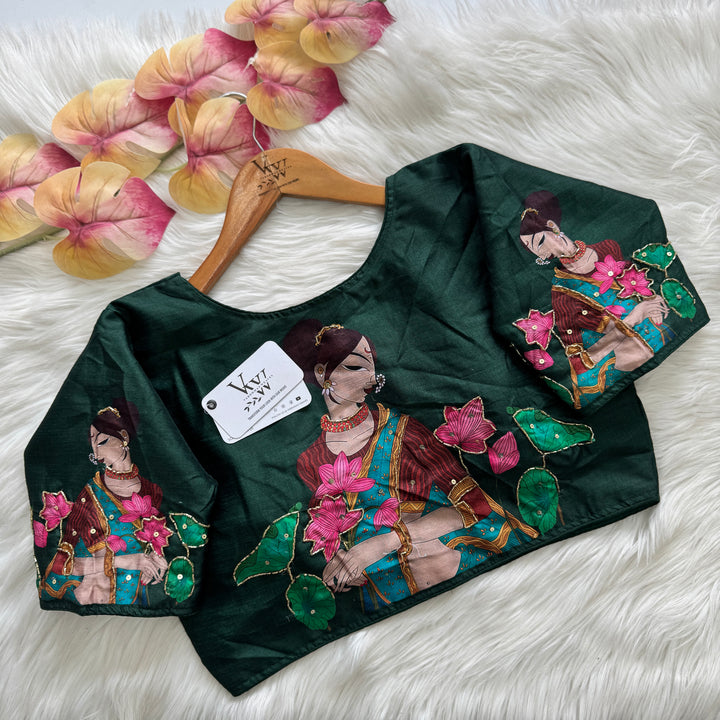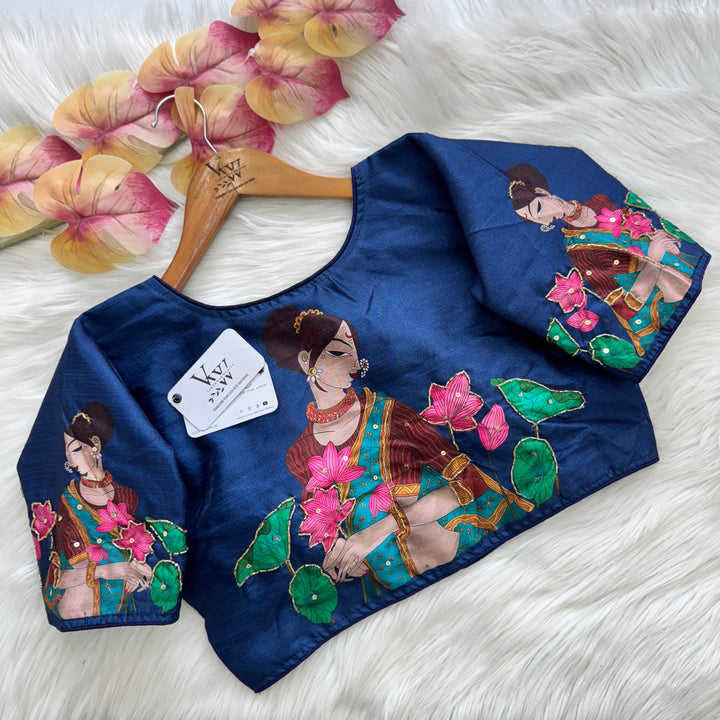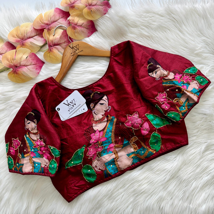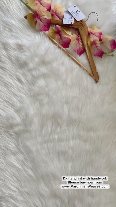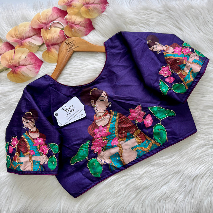 Pure Silk Fabric With Decent Print All Over Blouse With Antique Handcrafted Work