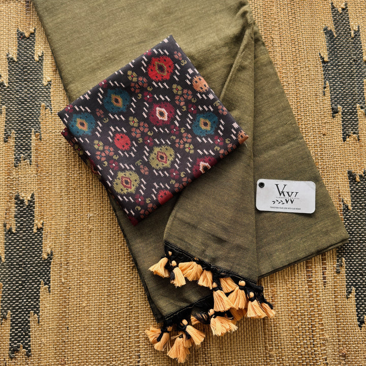 Classic Cotton Saree with Tassels & Designer Printed Blouse