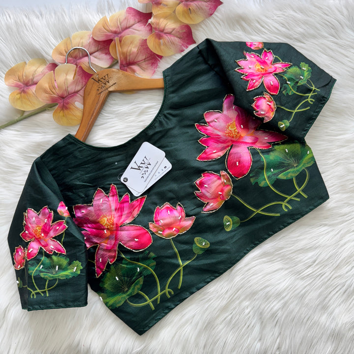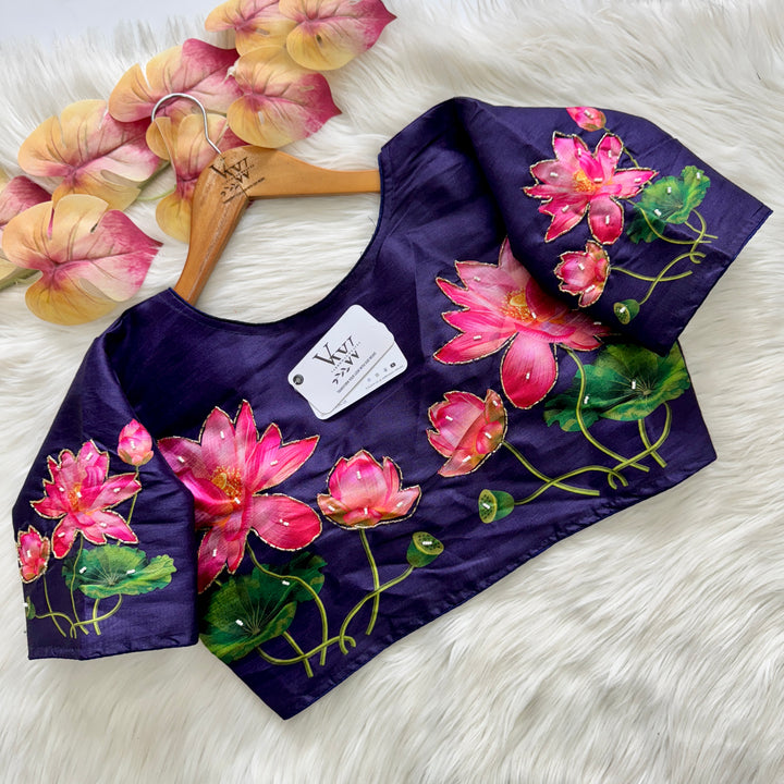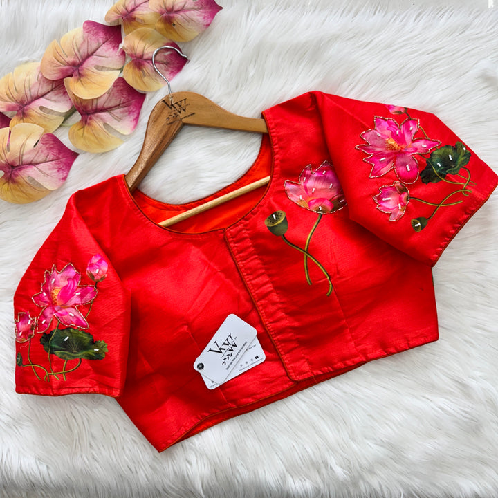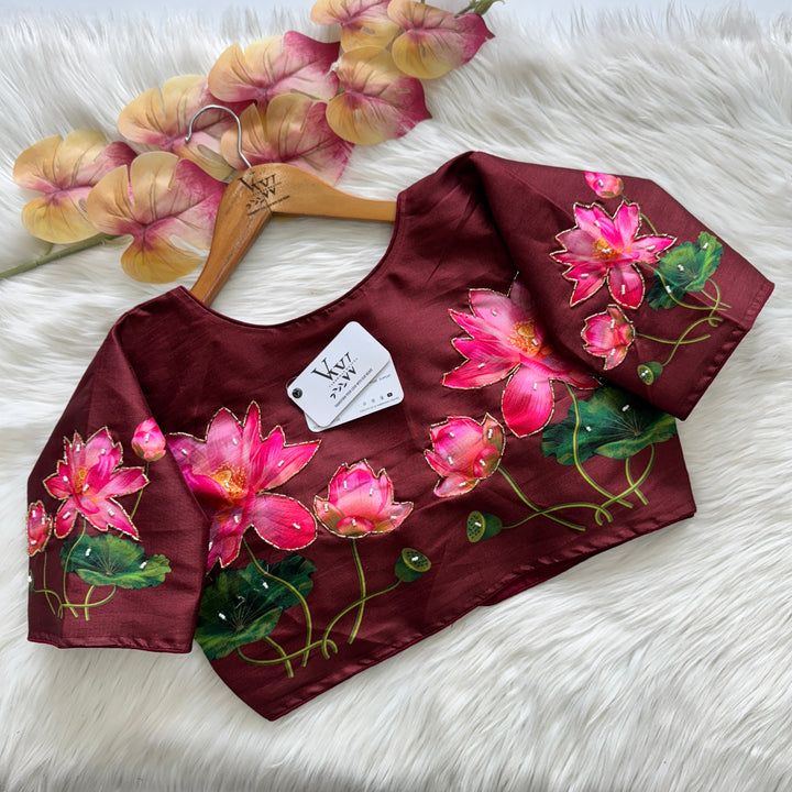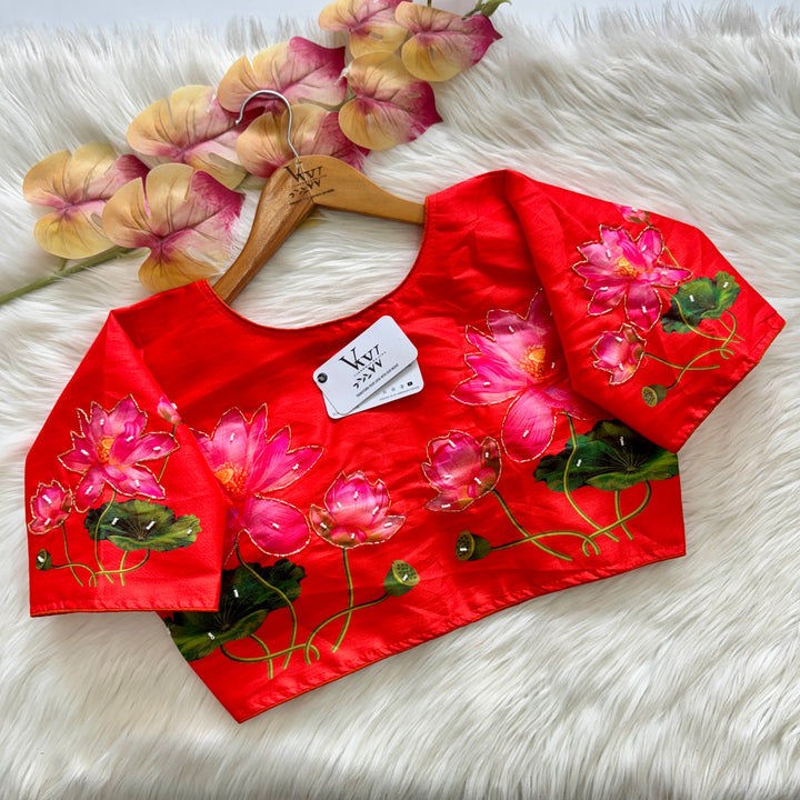 Pure Silk Fabric With Decent Print All Over Blouse With Antique Handcrafted Work