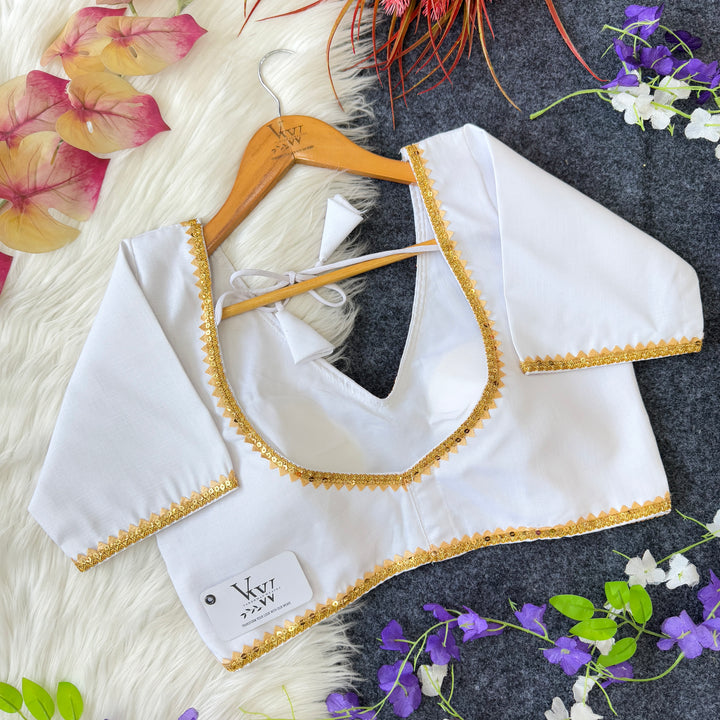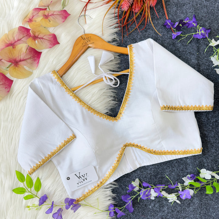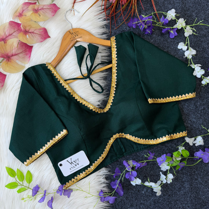 Elevate your style with this stunning cotton blouse featuring a intricate sequence border. Made from high-quality cotton, this blouse is not only stylish but also comfortable to wear. The sequence border adds a touch of glamour and sophistication, making it perfect for any occasion. Pair it with your favorite jeans or skirt for a chic and elegant look