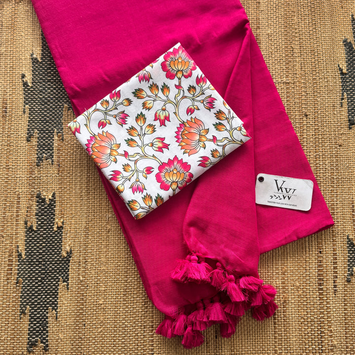 Cotton Saree with Tassels & Contrasting Printed Blouse