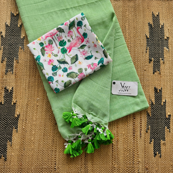 Cotton Saree with Tassels & Vibrant Printed Blouse