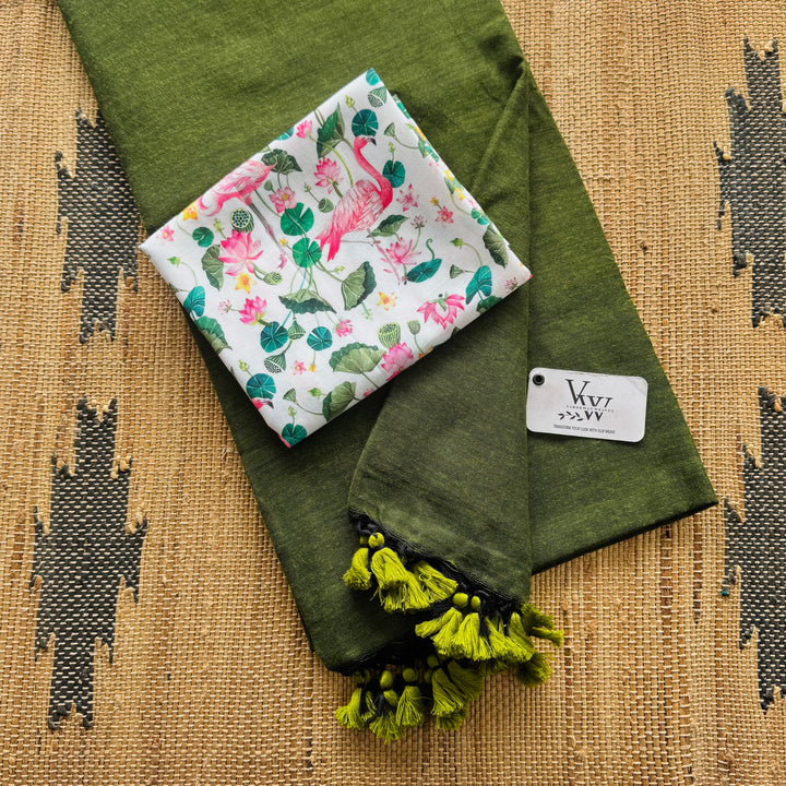Cotton Saree with Tassels & Vibrant Printed Blouse