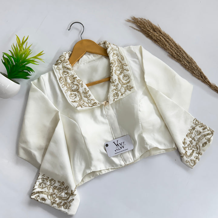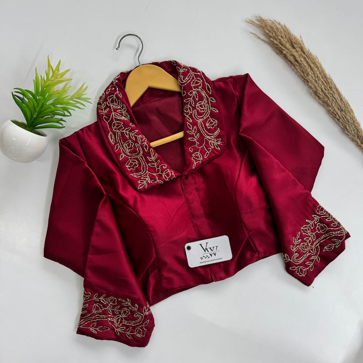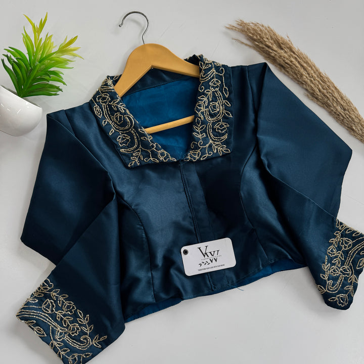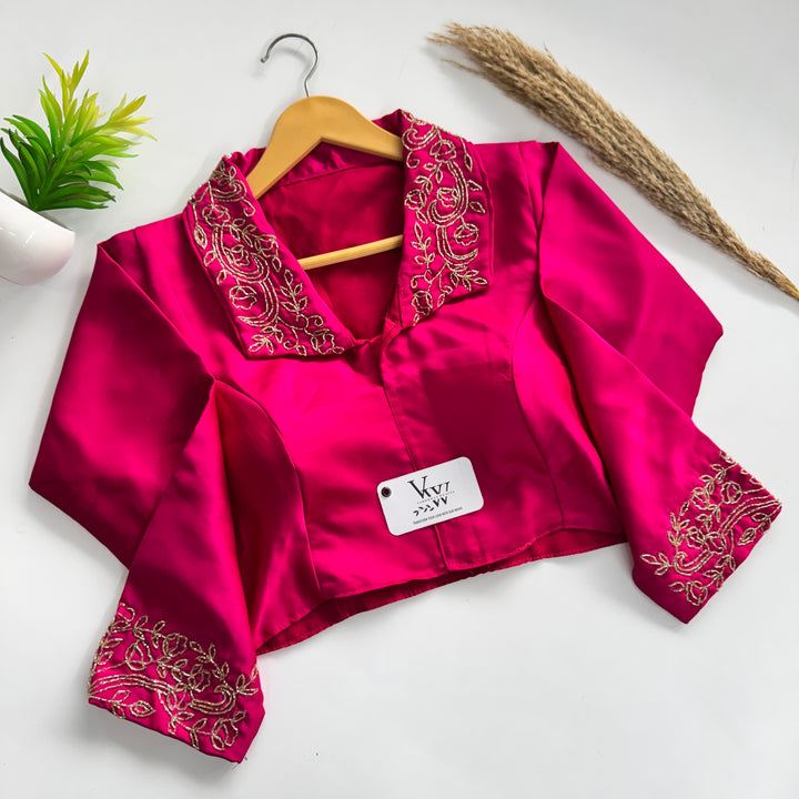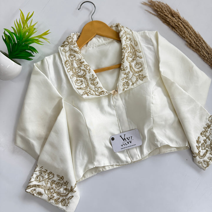 Elevate your style with our stunning designer handwork collar blouse, featuring intricate embroidery and exquisite craftsmanship. Perfect for formal events, parties, or special occasions