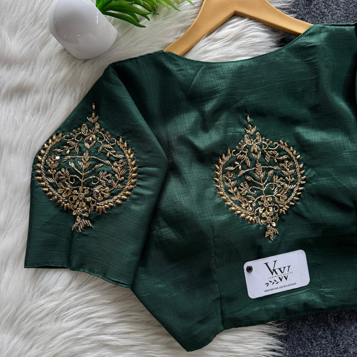 Make a statement with our stunning designer heavy handwork blouse, featuring intricate embroidery and exquisite craftsmanship. Perfect for special occasions or formal events, this masterpiece showcases exceptional artistry and attention to detail