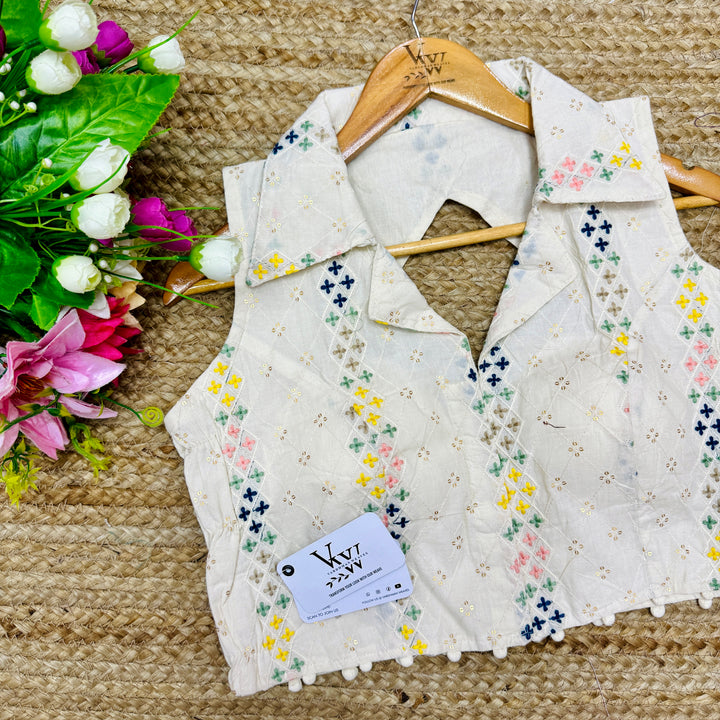 This blouse is expertly crafted with beautiful embroidery and sequence work all over, adding a touch of elegance to any outfit. 🌺Its intricate details and stunning design make it a must-have for any fashion-forward individual. Perfect for any occasion, this blouse is a versatile addition to your wardrobe.