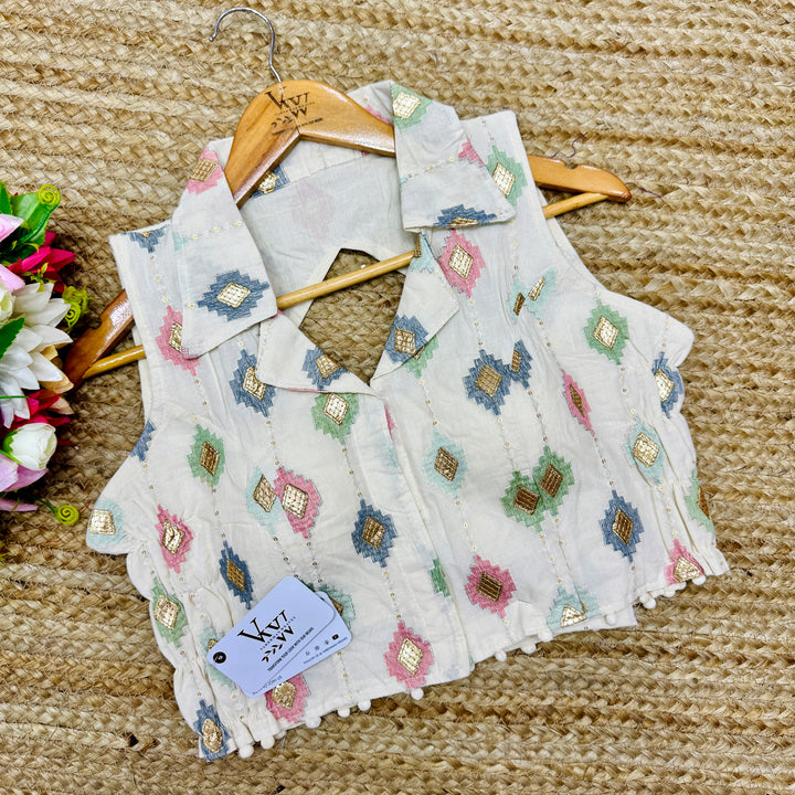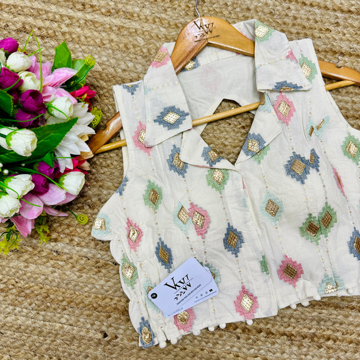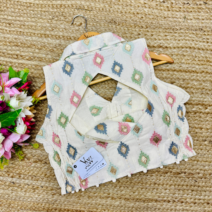 This blouse is expertly crafted with beautiful embroidery and sequence work all over, adding a touch of elegance to any outfit. 🌺Its intricate details and stunning design make it a must-have for any fashion-forward individual. Perfect for any occasion, this blouse is a versatile addition to your wardrobe.