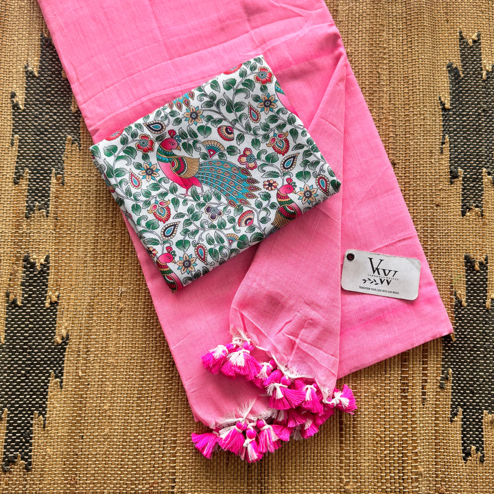 Elegant Cotton Saree with Tassels & Digital Printed Blouse