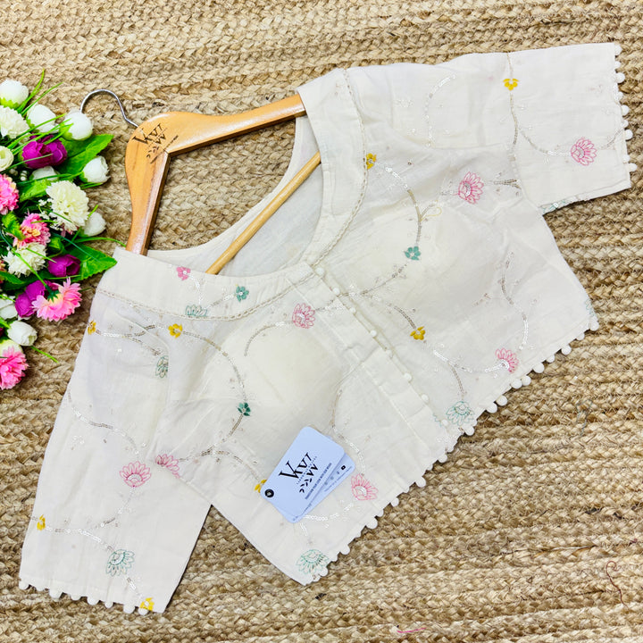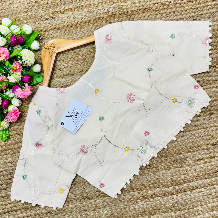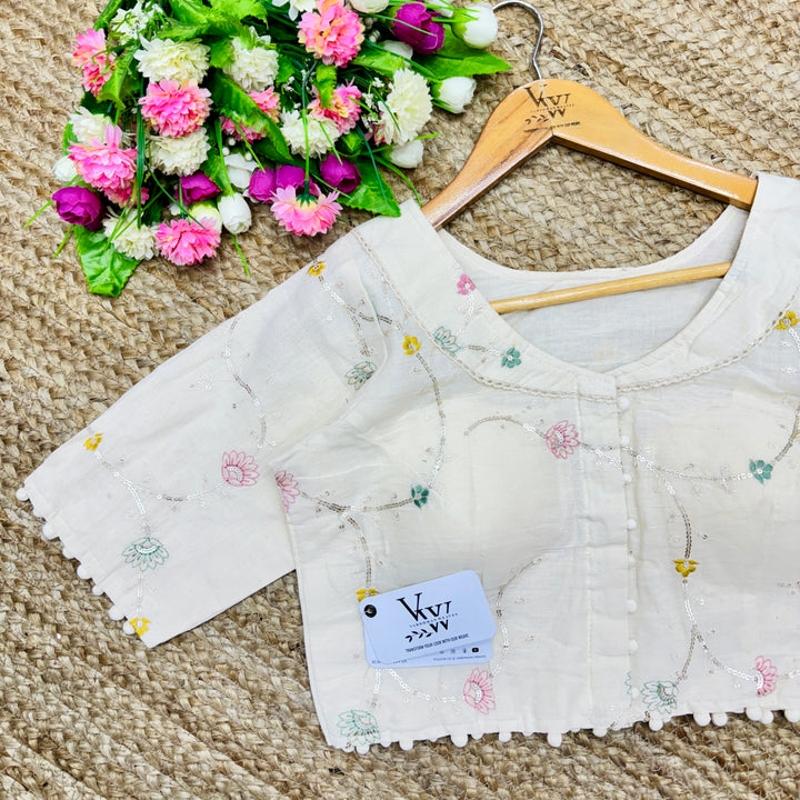 "Enhance your wardrobe with our stunning multi-work blouse. Featuring intricate embroidery and shimmering sequins, this versatile top is perfect for any occasion. Elevate your style with our unique and beautiful design, sure to make a statement."