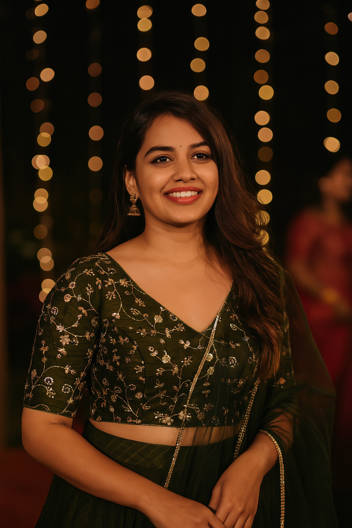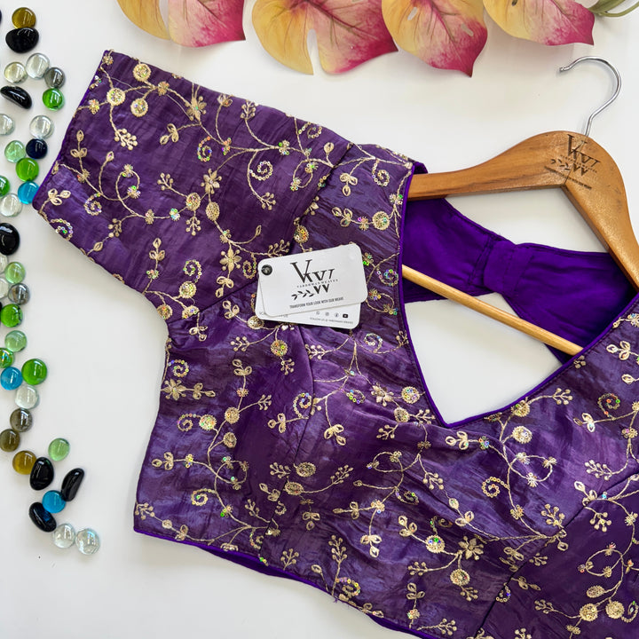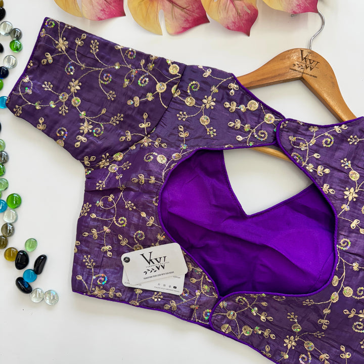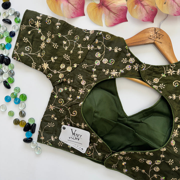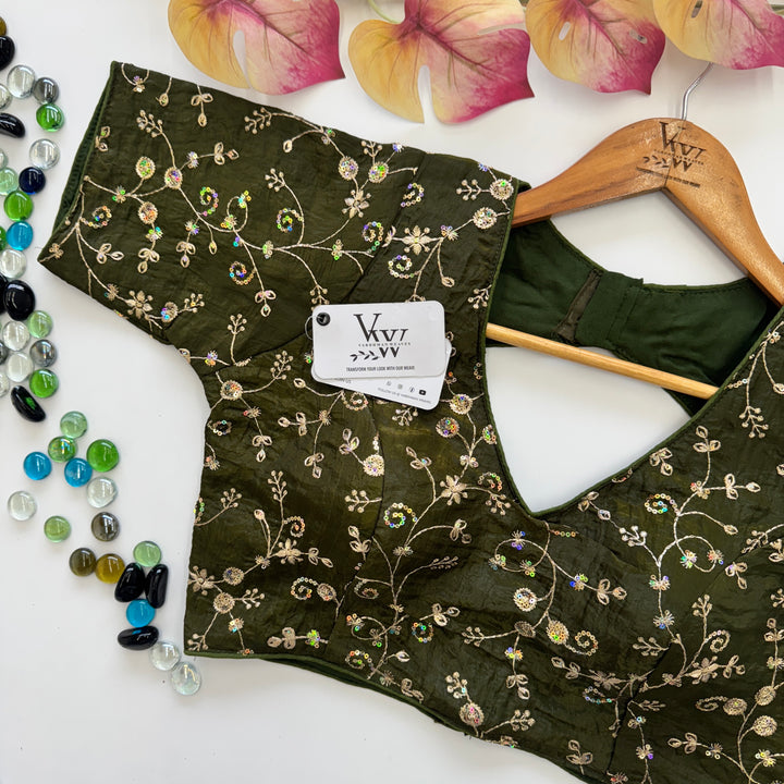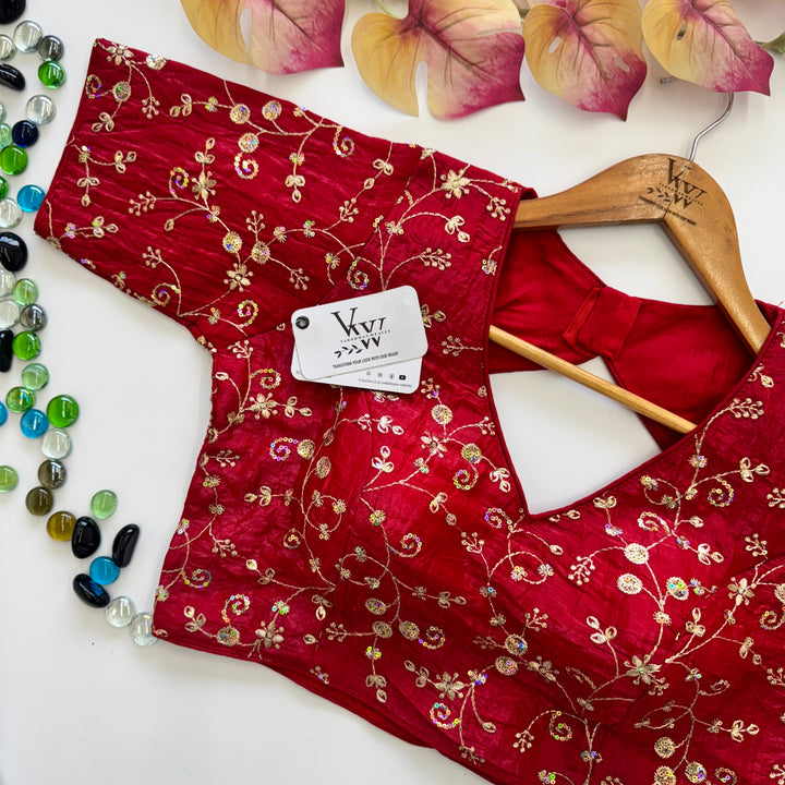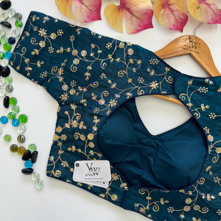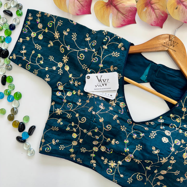 This exquisite blouse is a true showstopper, featuring heavy embroidery work that's meticulously touched up with sparkling sequence all over. The intricate design and attention to detail create a truly regal and eye-catching piece, perfect for making a statement at any special occasion