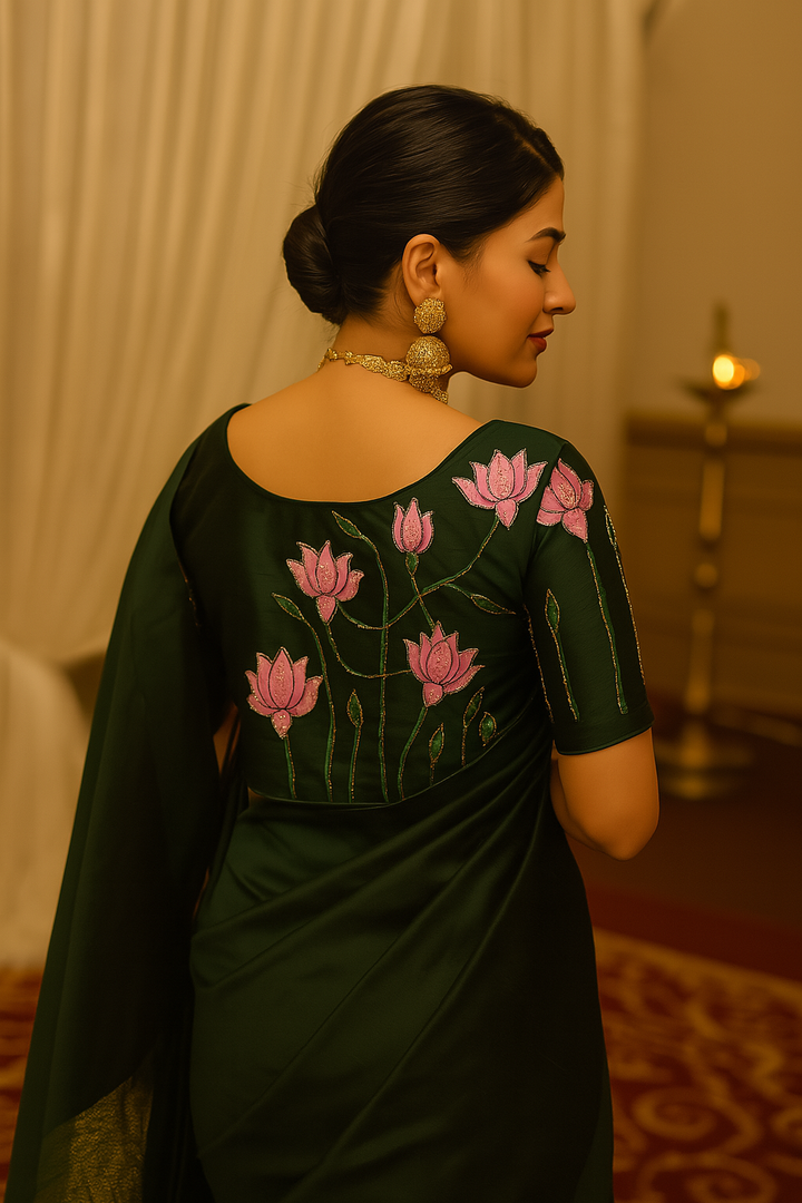 Pure Silk Fabric With Decent Print All Over Blouse With Antique Handcrafted Work