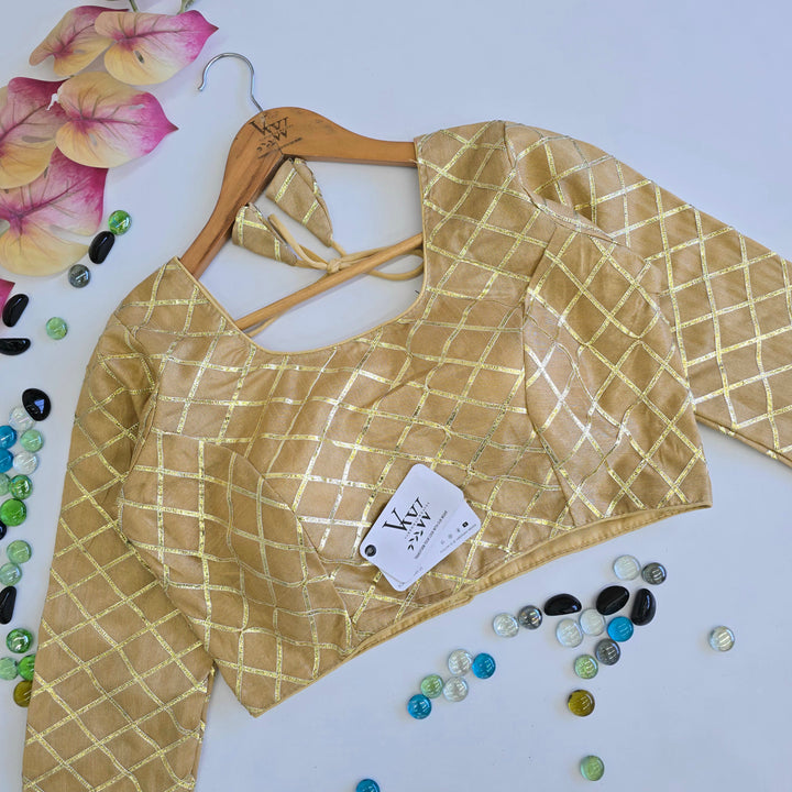 Elevate your style with this stunning blouse, showcasing intricate Gottapati work, meticulously crafted to create a masterpiece of traditional Indian embroidery.