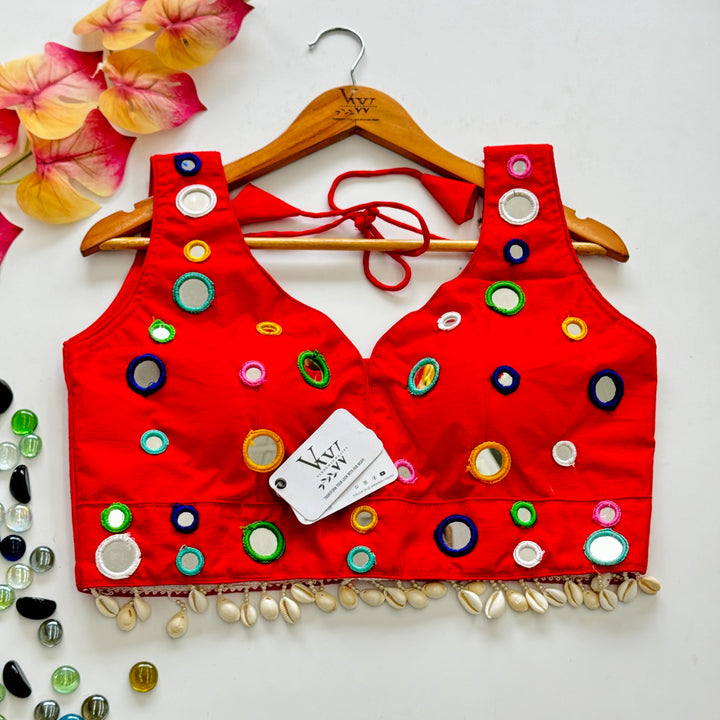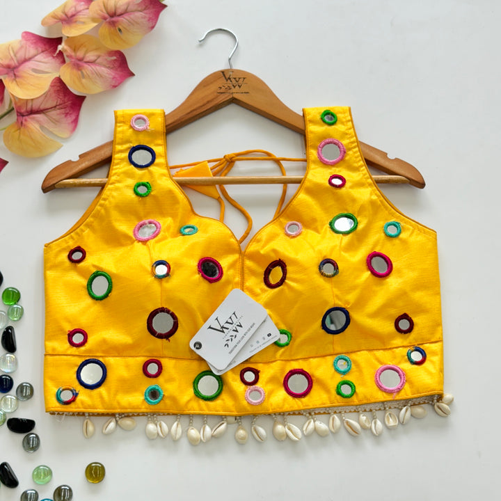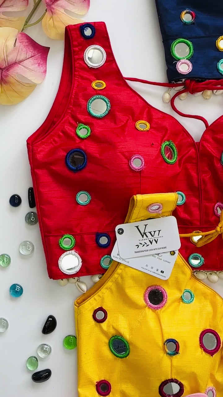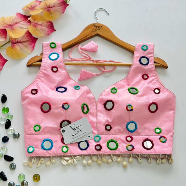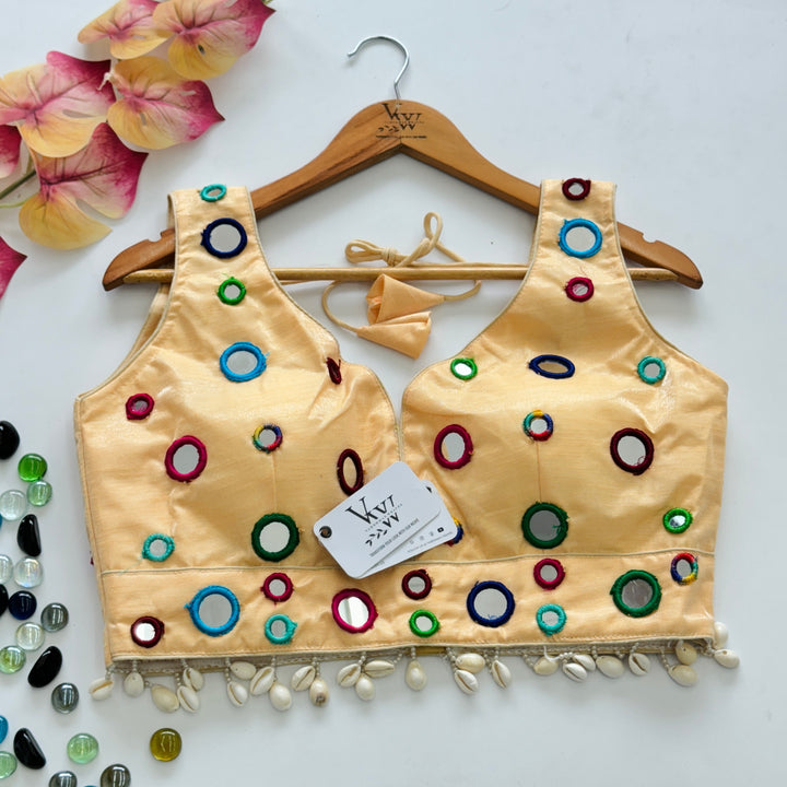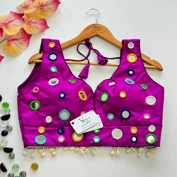 Expertly crafted to elevate your style, our product features heavy multi embroidery work, real mirrors, and fancy tassels with a back dori. With intricate detailing and quality materials, this product exudes elegance and adds a touch of glam to any outfit. ✨