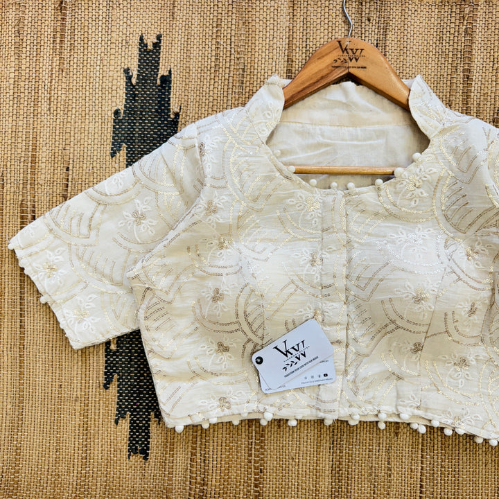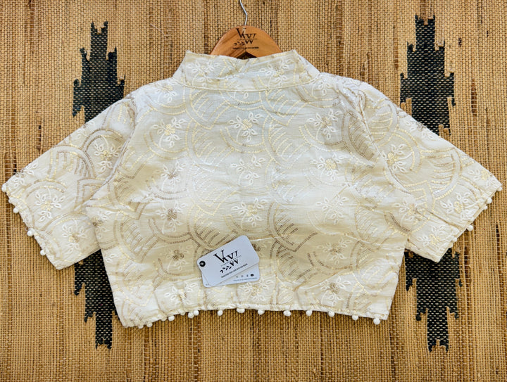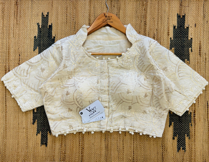 "Enhance your wardrobe with our stunning multi-work blouse. Featuring intricate embroidery and shimmering sequins, this versatile top is perfect for any occasion. Elevate your style with our unique and beautiful design, sure to make a statement."
