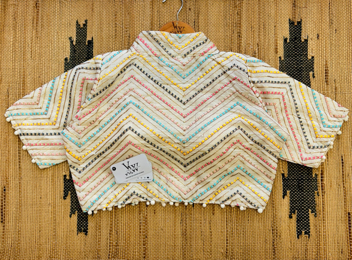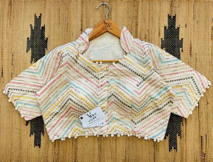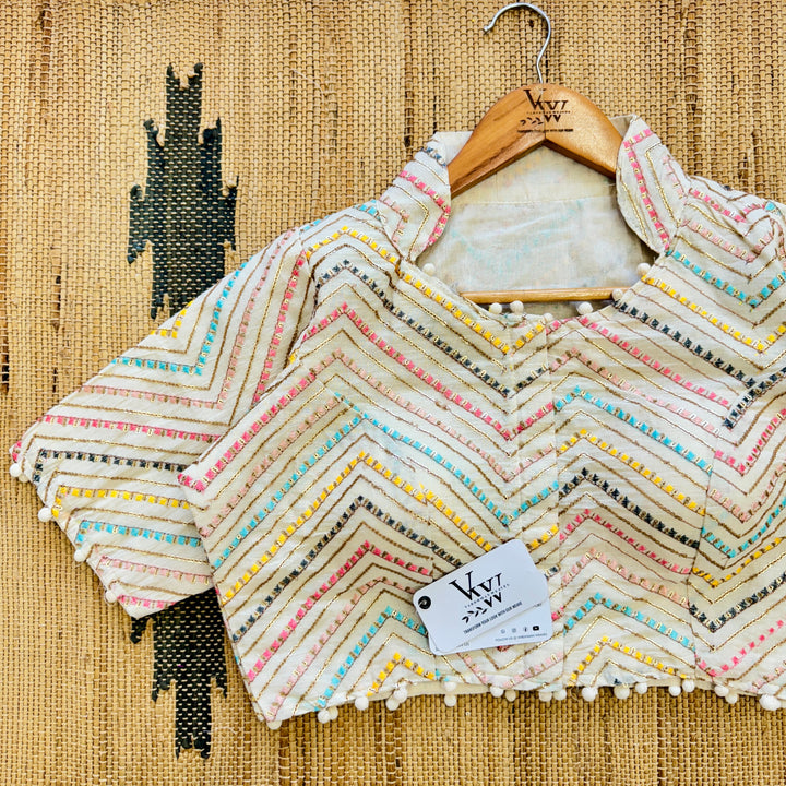 "Enhance your wardrobe with our stunning multi-work blouse. Featuring intricate embroidery and shimmering sequins, this versatile top is perfect for any occasion. Elevate your style with our unique and beautiful design, sure to make a statement."
