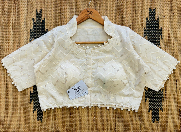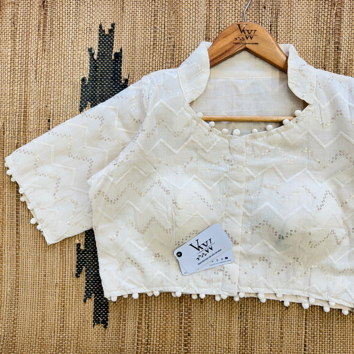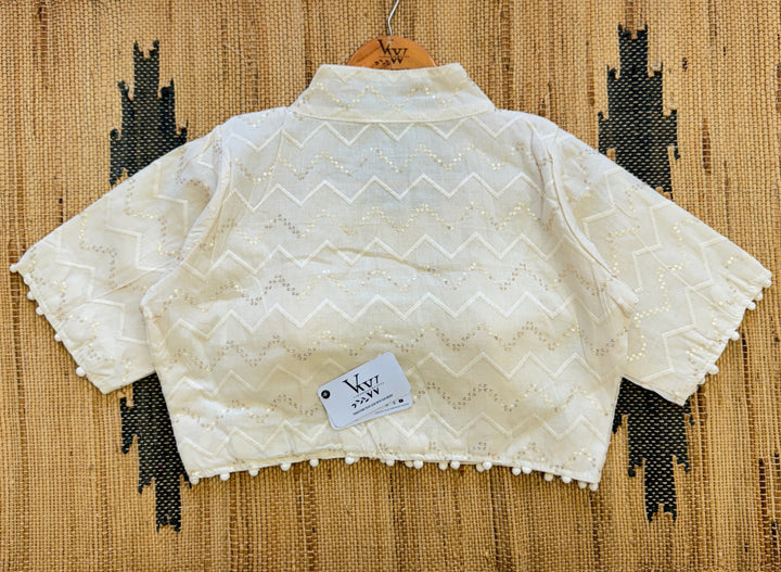 "Enhance your wardrobe with our stunning multi-work blouse. Featuring intricate embroidery and shimmering sequins, this versatile top is perfect for any occasion. Elevate your style with our unique and beautiful design, sure to make a statement."