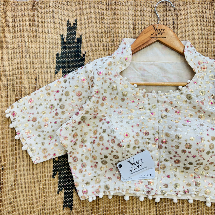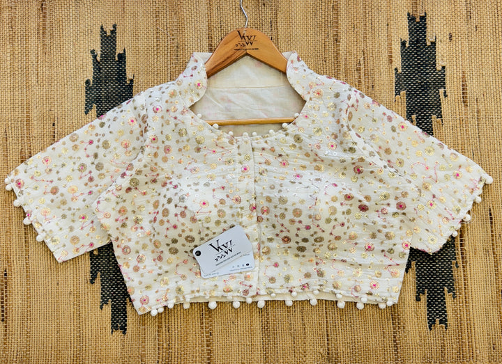 "Enhance your wardrobe with our stunning multi-work blouse. Featuring intricate embroidery and shimmering sequins, this versatile top is perfect for any occasion. Elevate your style with our unique and beautiful design, sure to make a statement."
