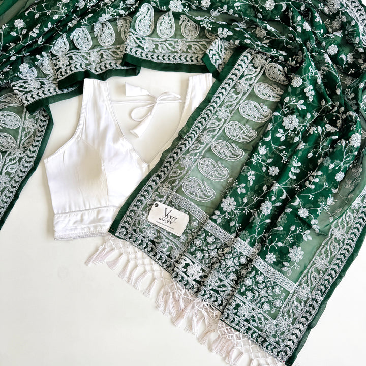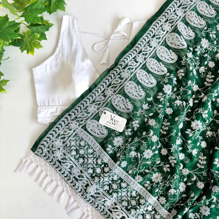 Lichi Elegant Enchantment - Maamra Organza Saree with Matching Silk Blouse