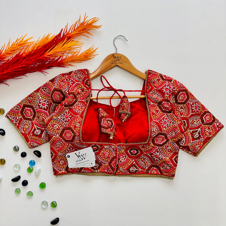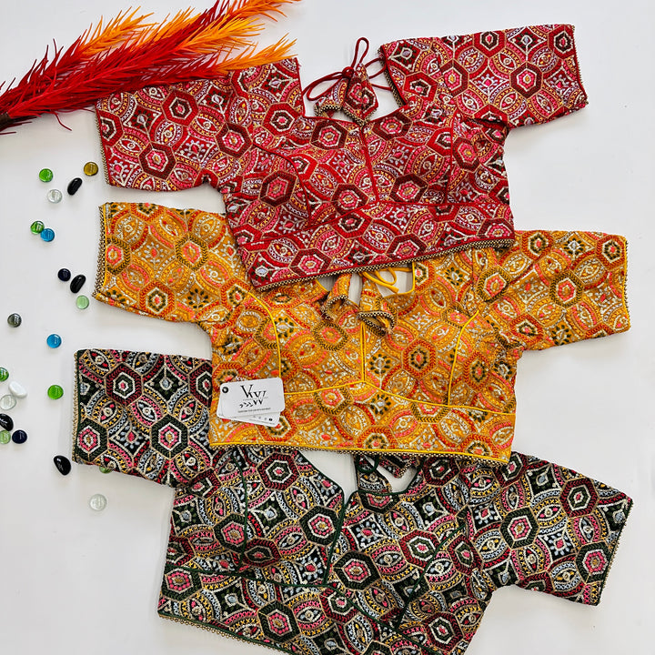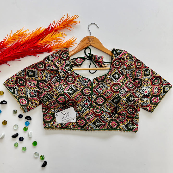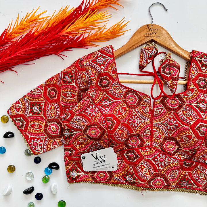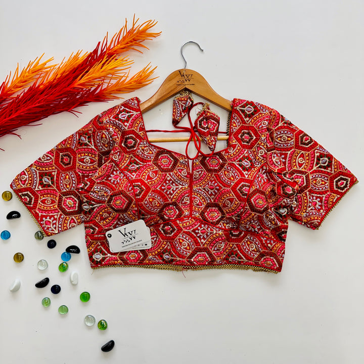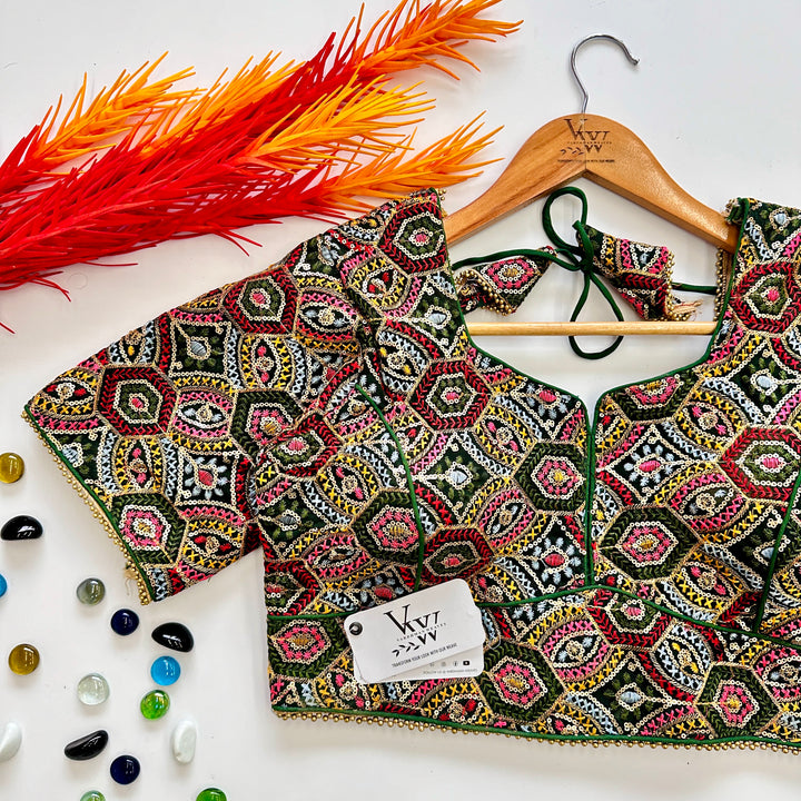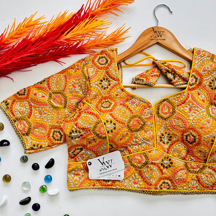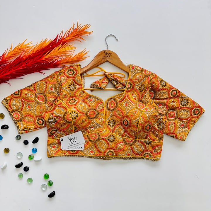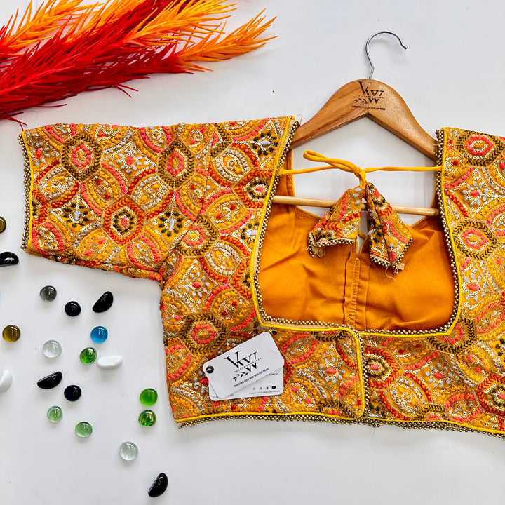 This elegant blouse is made with heavy georgette fabric, featuring exquisite sequence and multi embroidery work. Add a touch of luxury to your wardrobe with this beautifully crafted piece. 👌