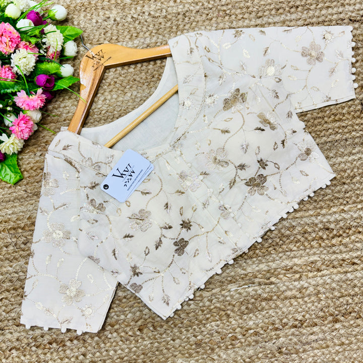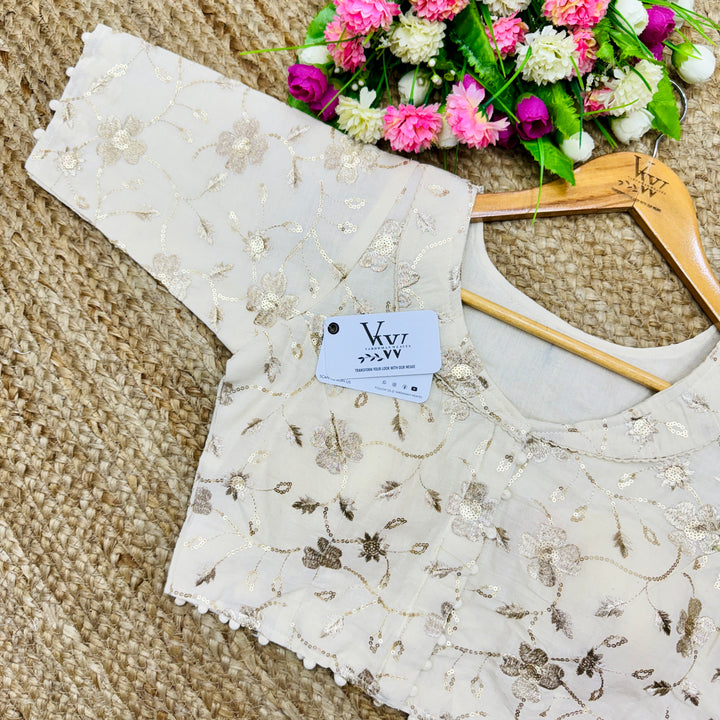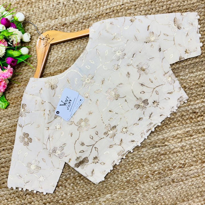 "Enhance your wardrobe with our stunning multi-work blouse. Featuring intricate embroidery and shimmering sequins, this versatile top is perfect for any occasion. Elevate your style with our unique and beautiful design, sure to make a statement."