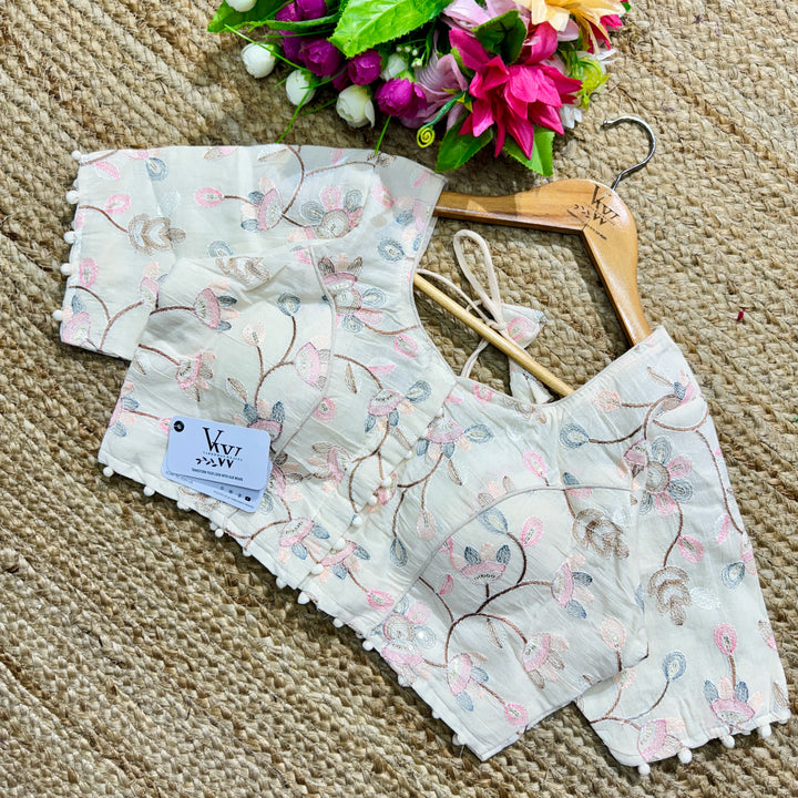 "Enhance your wardrobe with our stunning multi-work blouse. Featuring intricate embroidery and shimmering sequins, this versatile top is perfect for any occasion. Elevate your style with our unique and beautiful design, sure to make a statement."
