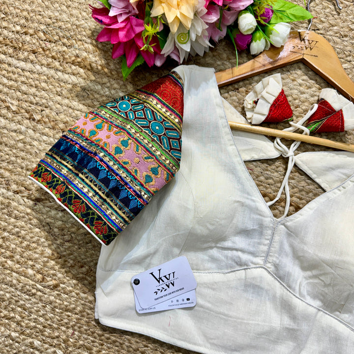 Our expertly crafted blouse features a pure blend of cotton for ultimate comfort. The contrast matching sleeves add a touch of style. Experience comfort and fashion with this unique blend. š