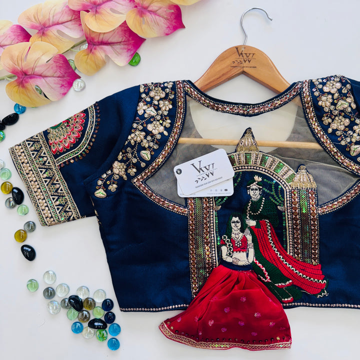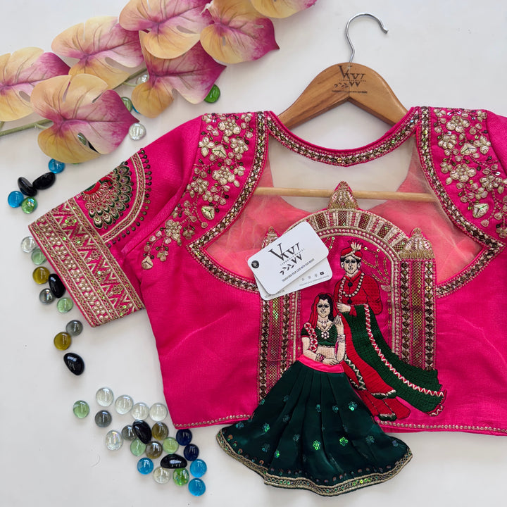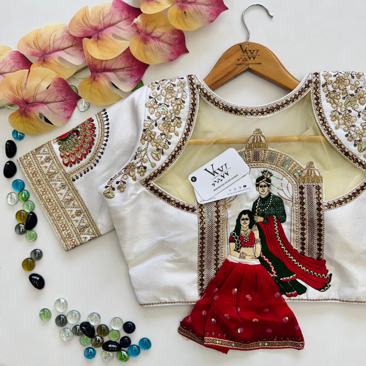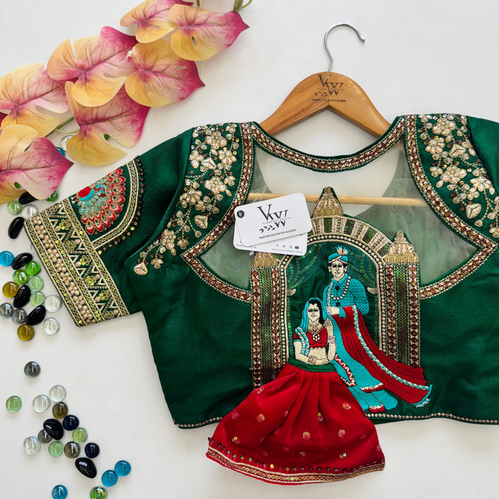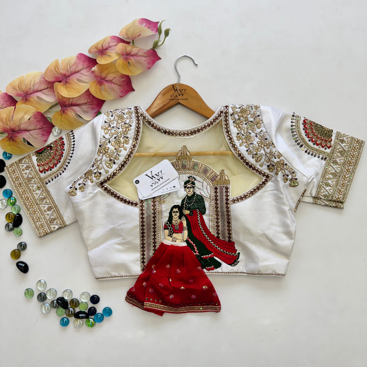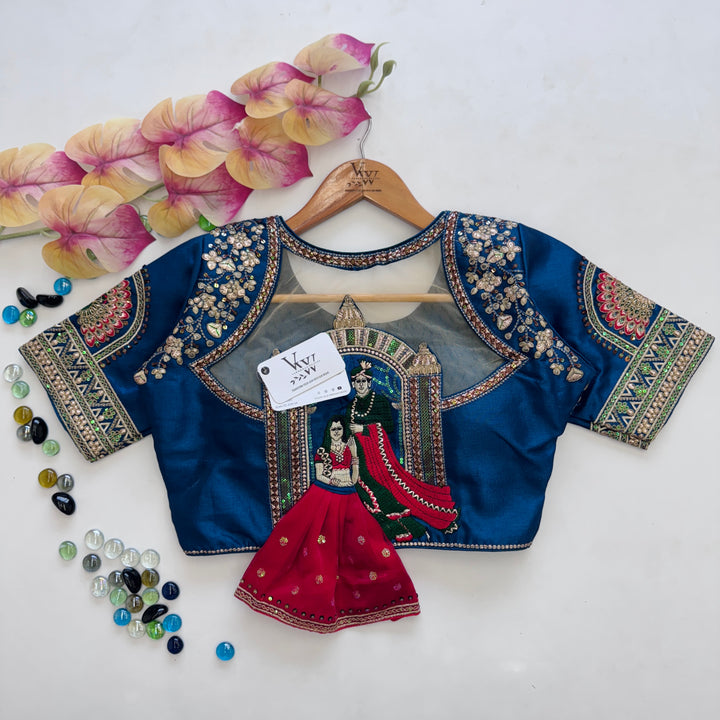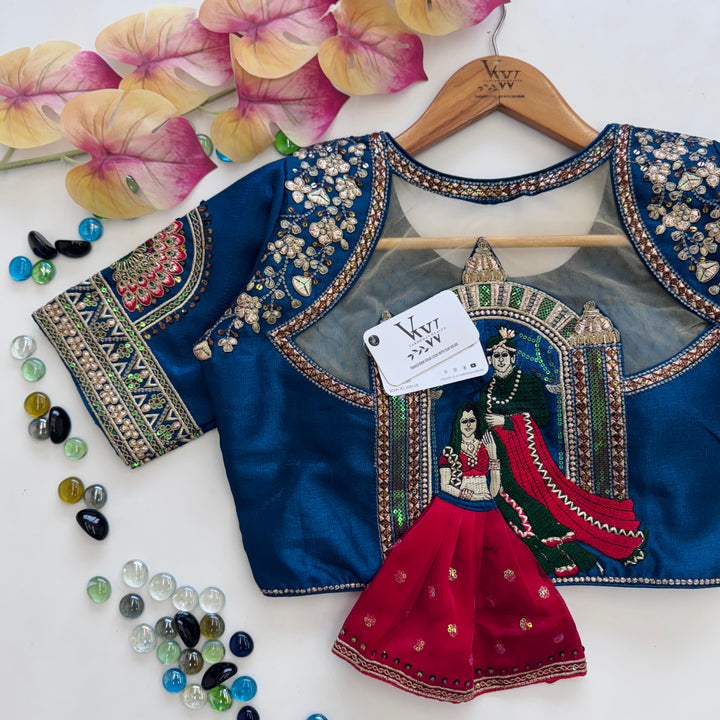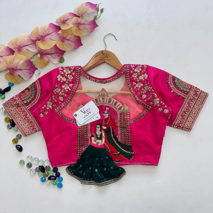"Make your special day unforgettable in our breathtakingly beautiful bridal blouse, featuring intricate hand-touchup embroidery, sequence work, and heavy coding. Every stitch is a testament to exceptional craftsmanship."
