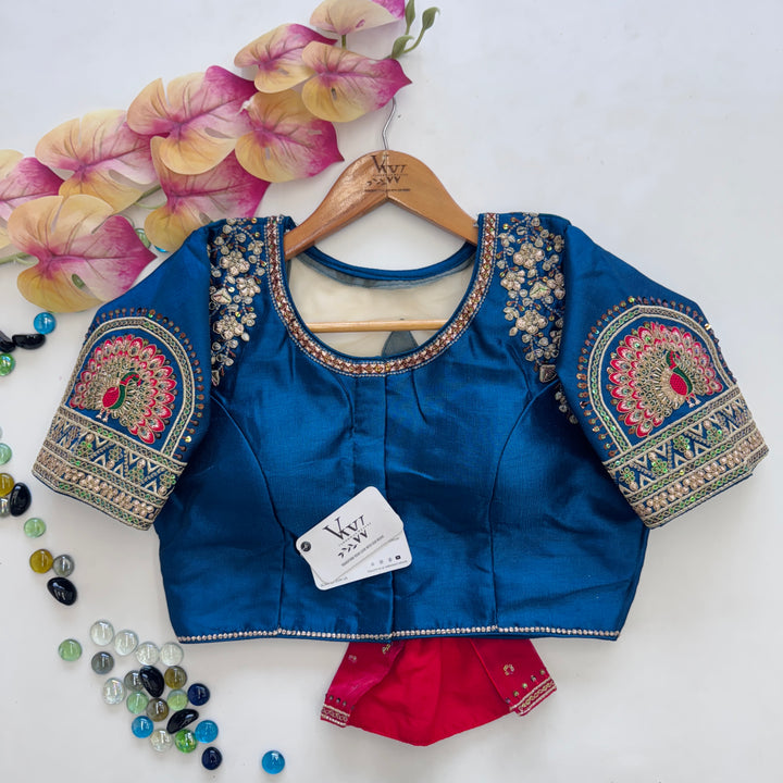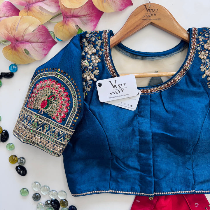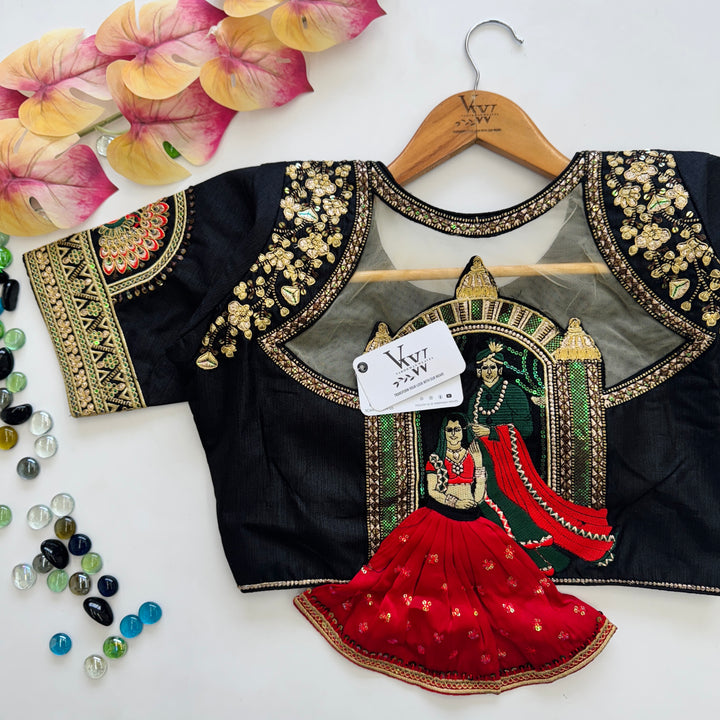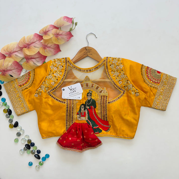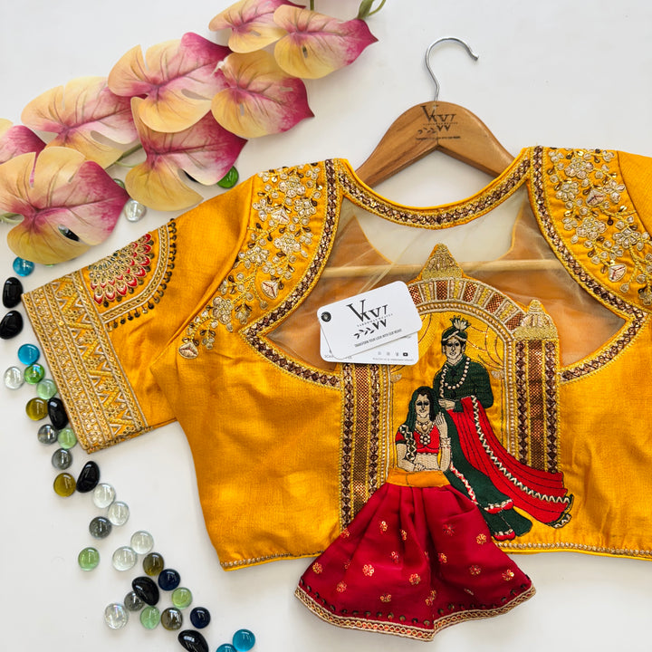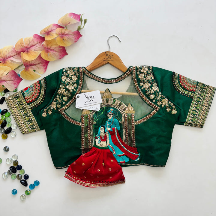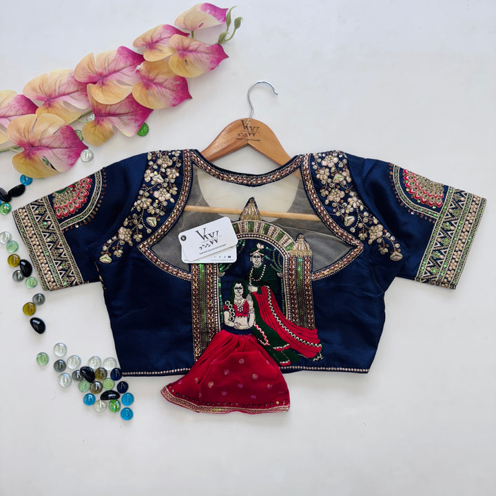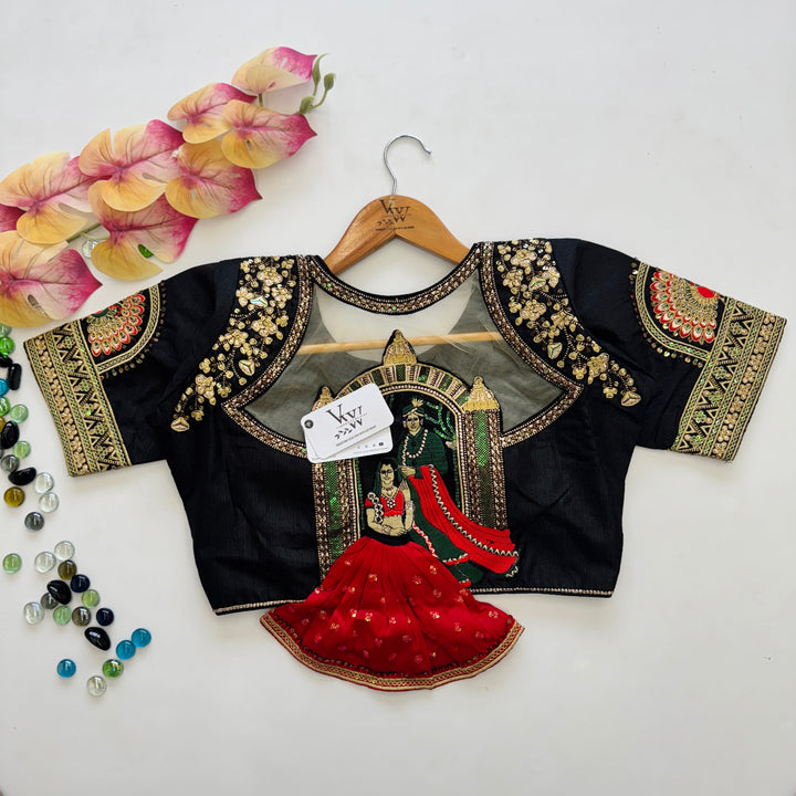 "Make your special day unforgettable in our breathtakingly beautiful bridal blouse, featuring intricate hand-touchup embroidery, sequence work, and heavy coding. Every stitch is a testament to exceptional craftsmanship."