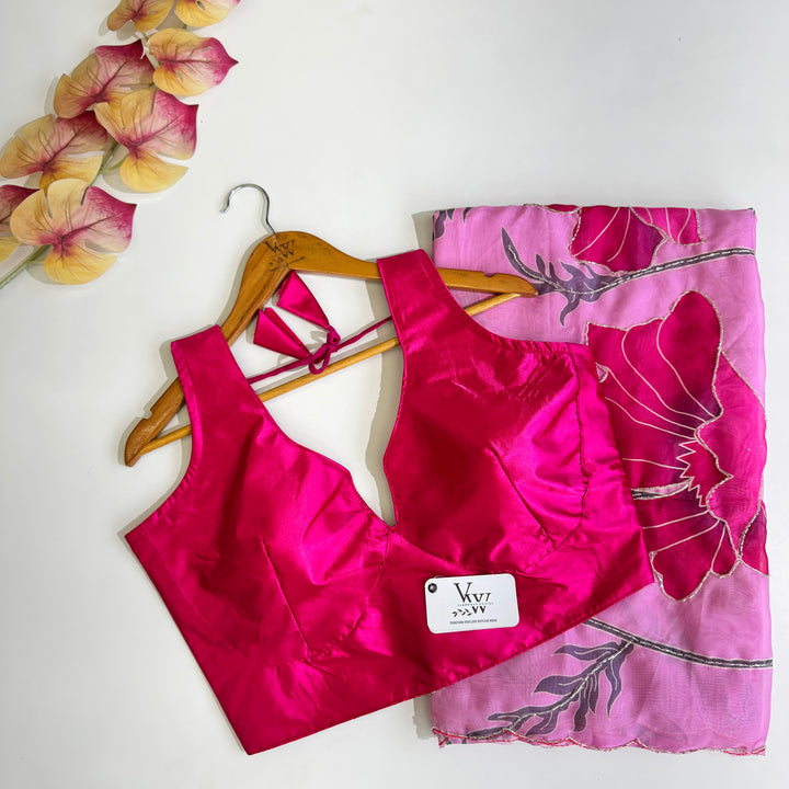 Ruby Handcrafted Beauty - Saree with Heavy Handwork and Silk Blouse