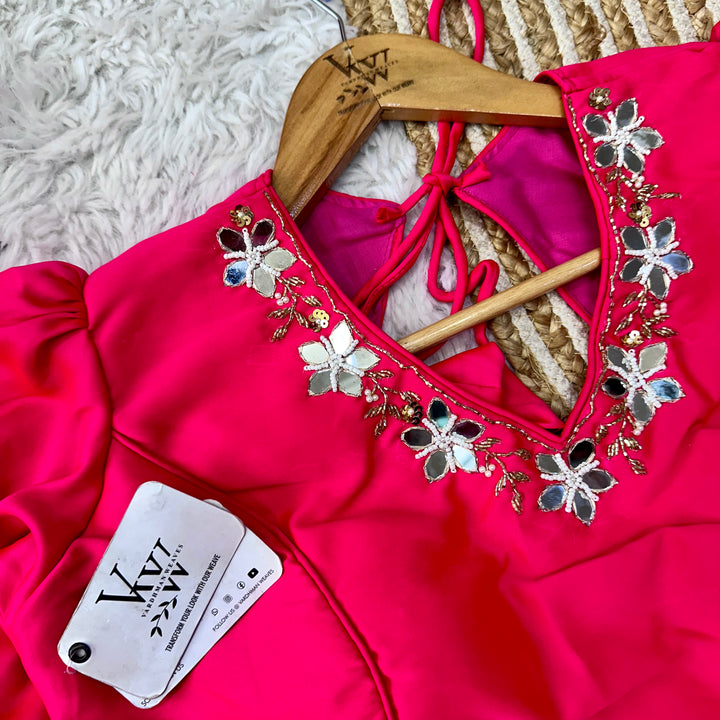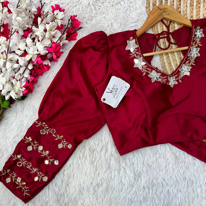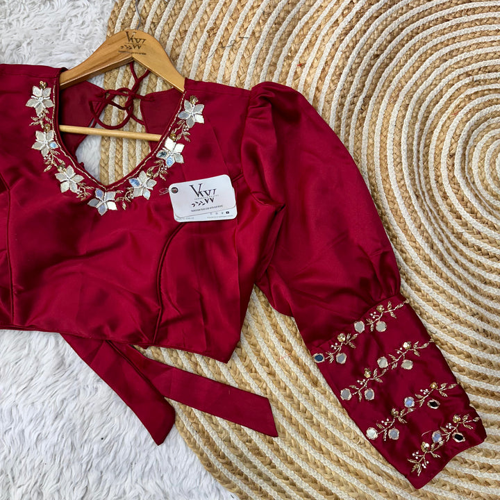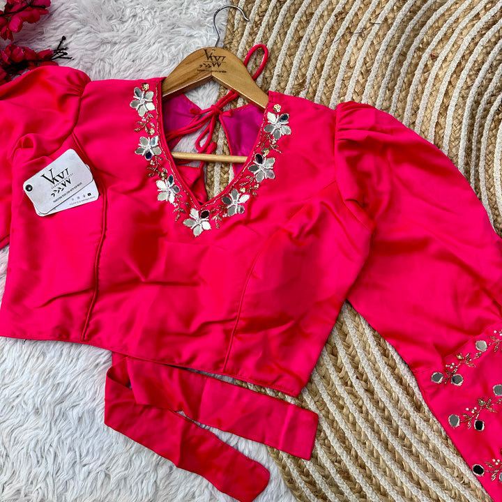 This designer blouse offers a flawless touch up of handwork throughout, giving you a pure and elegant look. Perfect for any occasion, this blouse will elevate your style to the next level. š