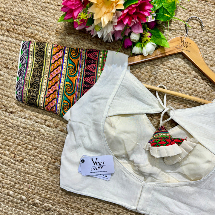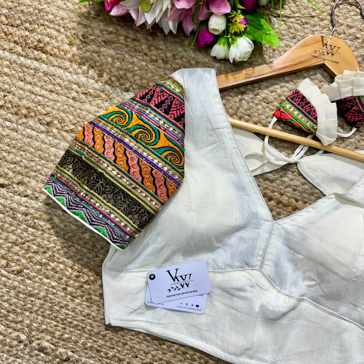 Our expertly crafted blouse features a pure blend of cotton for ultimate comfort. The contrast matching sleeves add a touch of style. Experience comfort and fashion with this unique blend. š