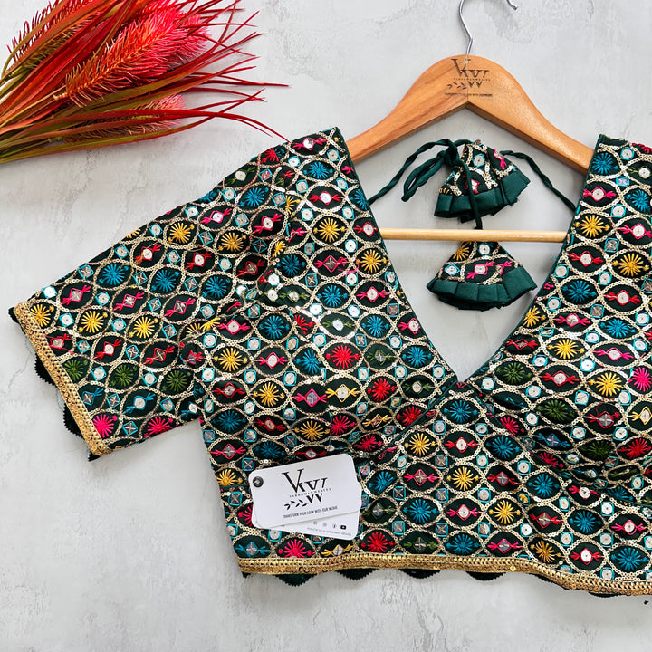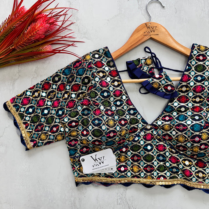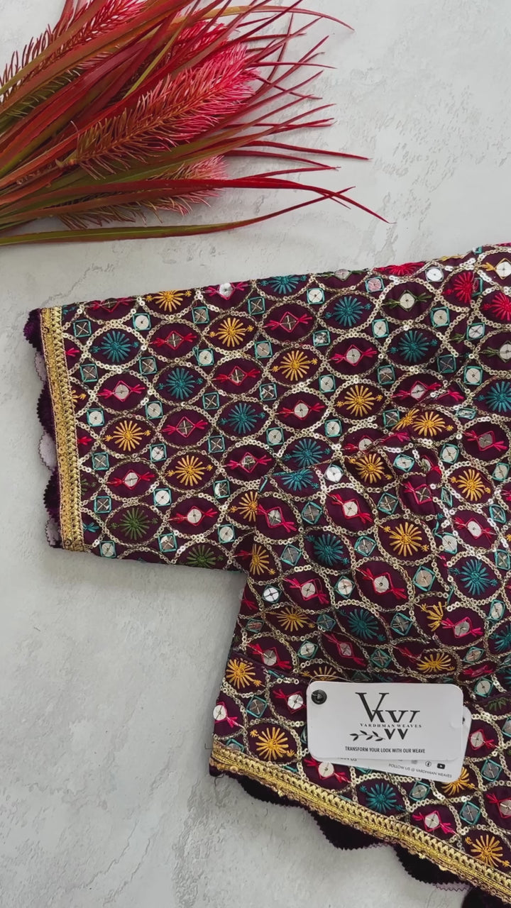 Introducing Sparsh, the perfect blend of elegance and style. Crafted from luxurious Heavy Georgette fabric, adorned with beautiful sequence and multi embroidery work in the blouse. Expertly designed for a flawless drape and a stunning look. Elevate your wardrobe with Sparsh. ✨